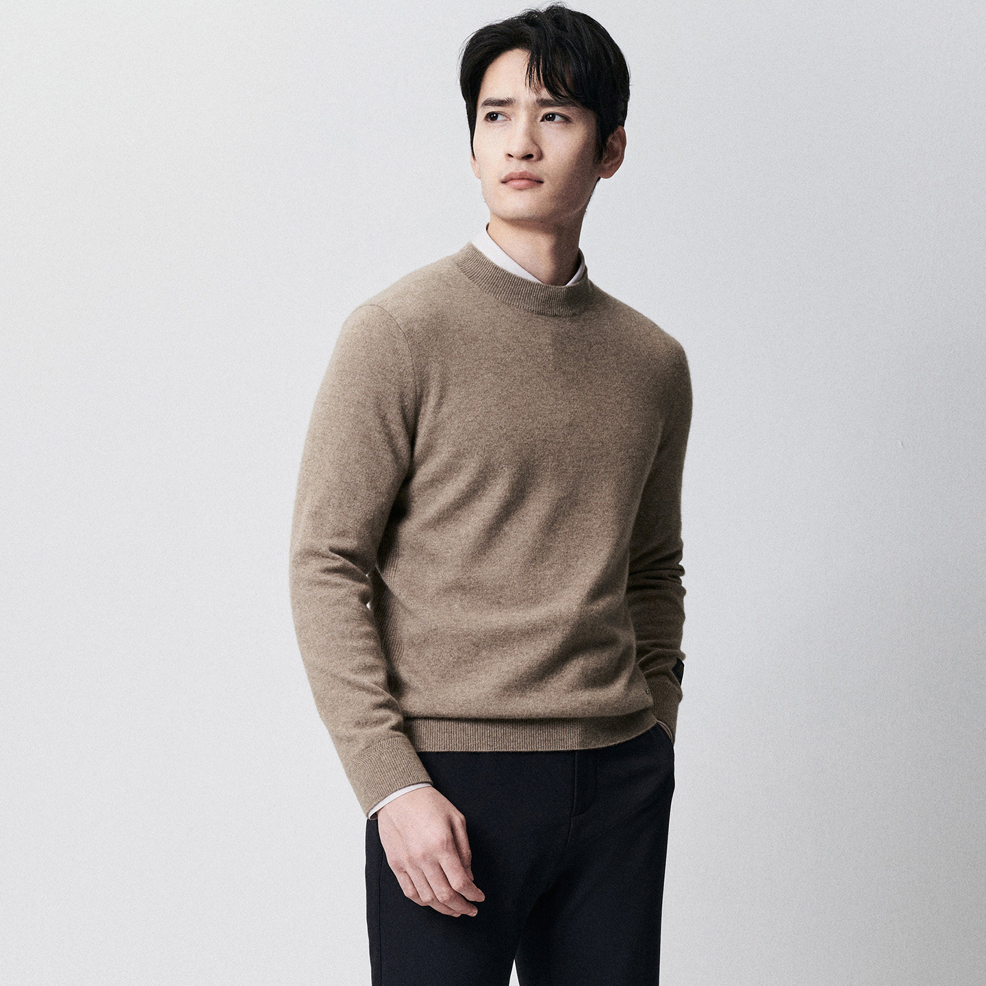 圣雪绒25秋冬新款男半高领纯色混纺羊绒衫基础款长袖套头针织衫