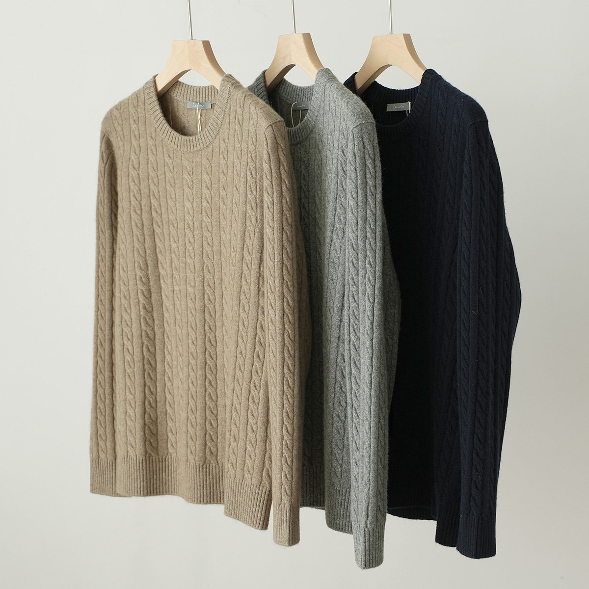 淘宝450g 定制款 26支双股全羊绒 男士绞花圆领毛衣 针织衫 秋冬男装