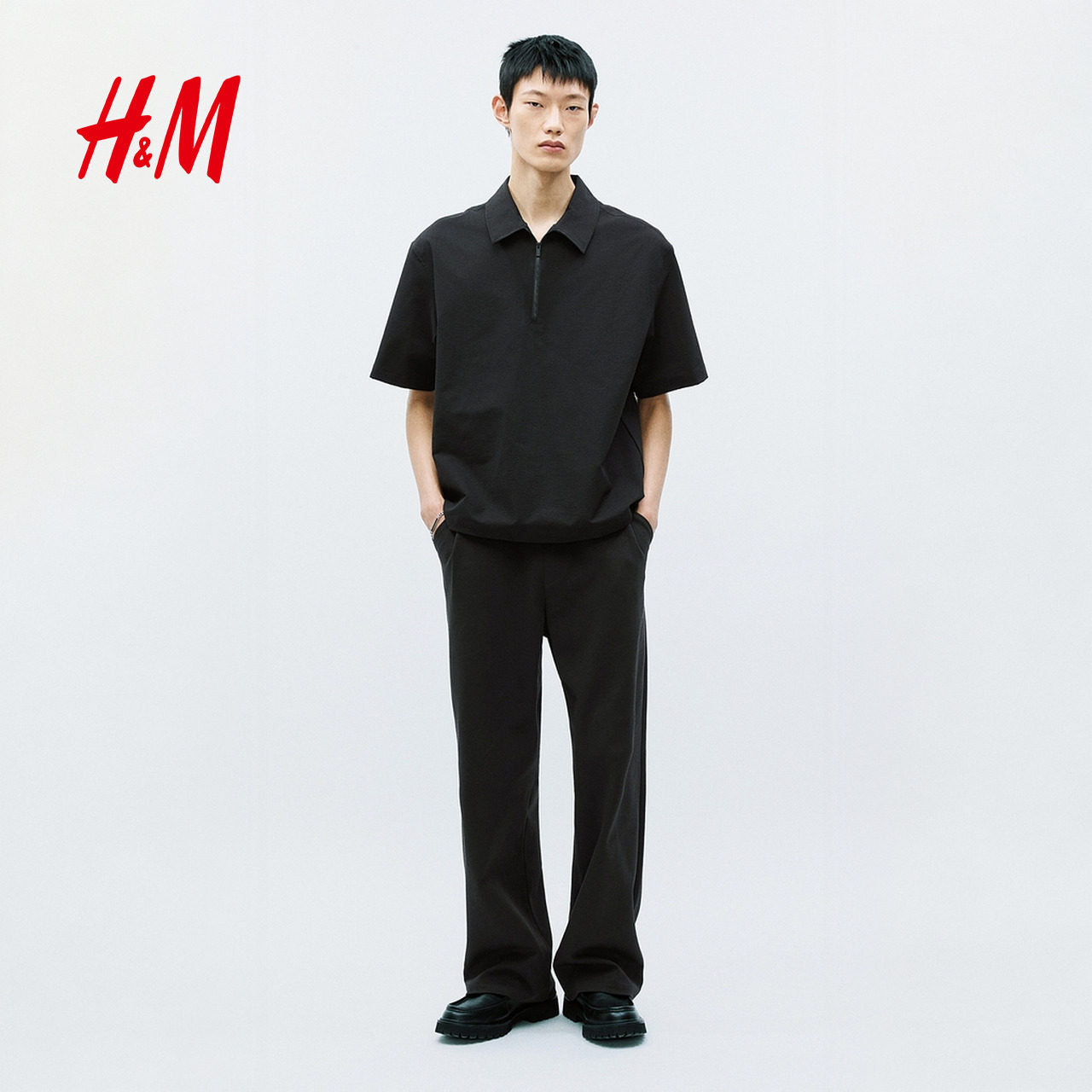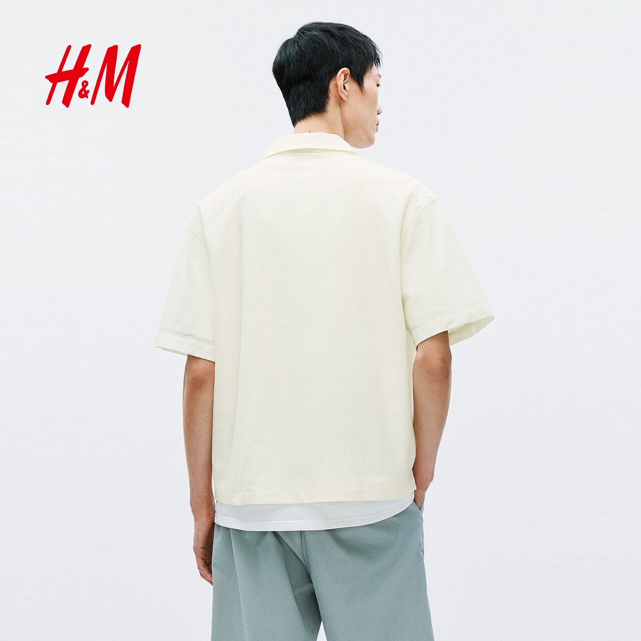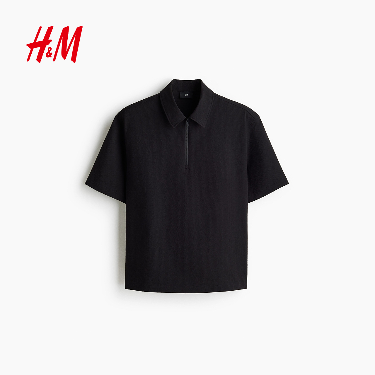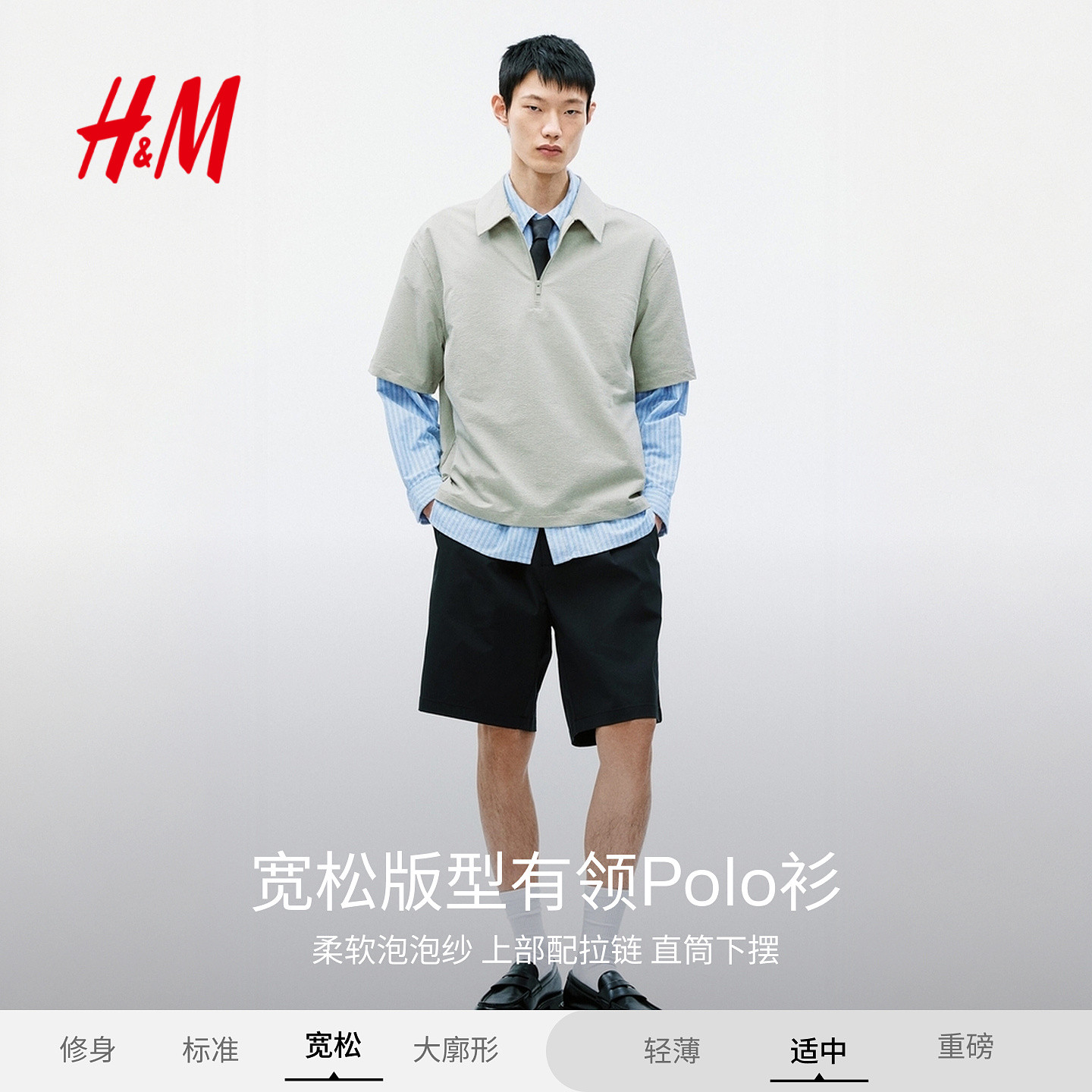 天猫HM男装Polo衫2026夏季新款宽松版型半拉链泡泡纱短袖上衣1326517