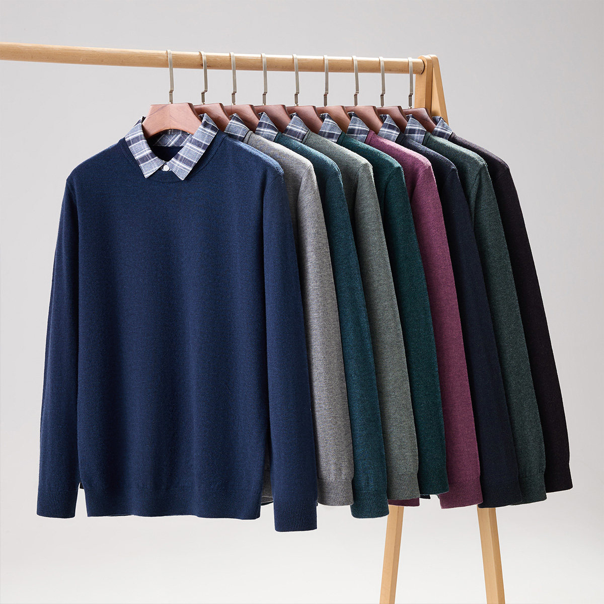 100%纯羊毛衫男半高领毛衣秋冬季加厚保暖中年针织打底圆领羊绒衫