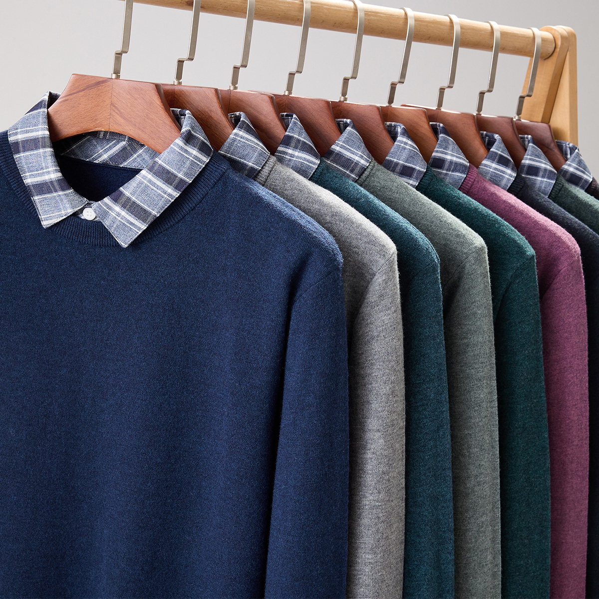 淘宝【商场同款】春竹100%羊毛26春季翻领假两件商务休闲保暖男羊毛衫