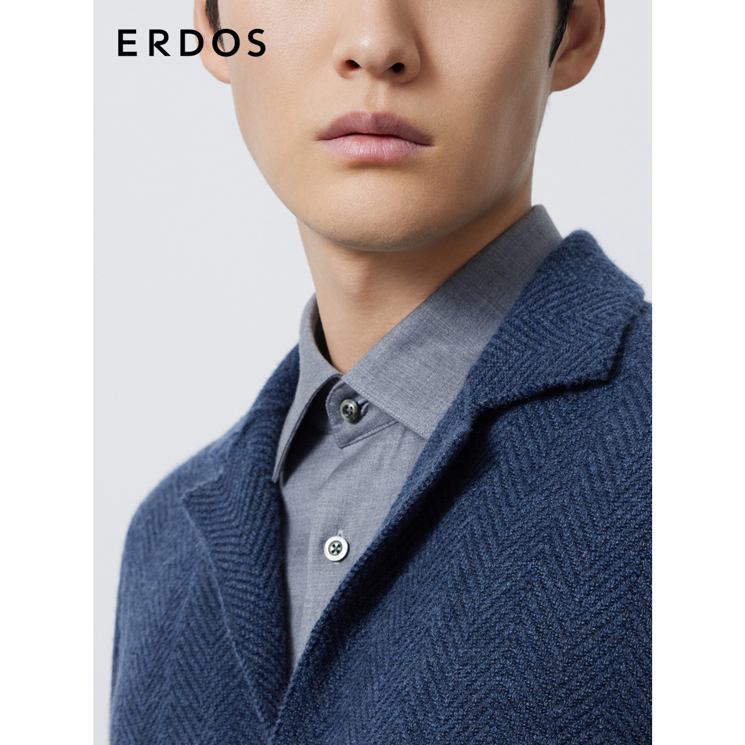 天猫ERDOS 男装羊毛羊绒混纺开衫秋冬宽松版型厚款巴尔领外套
