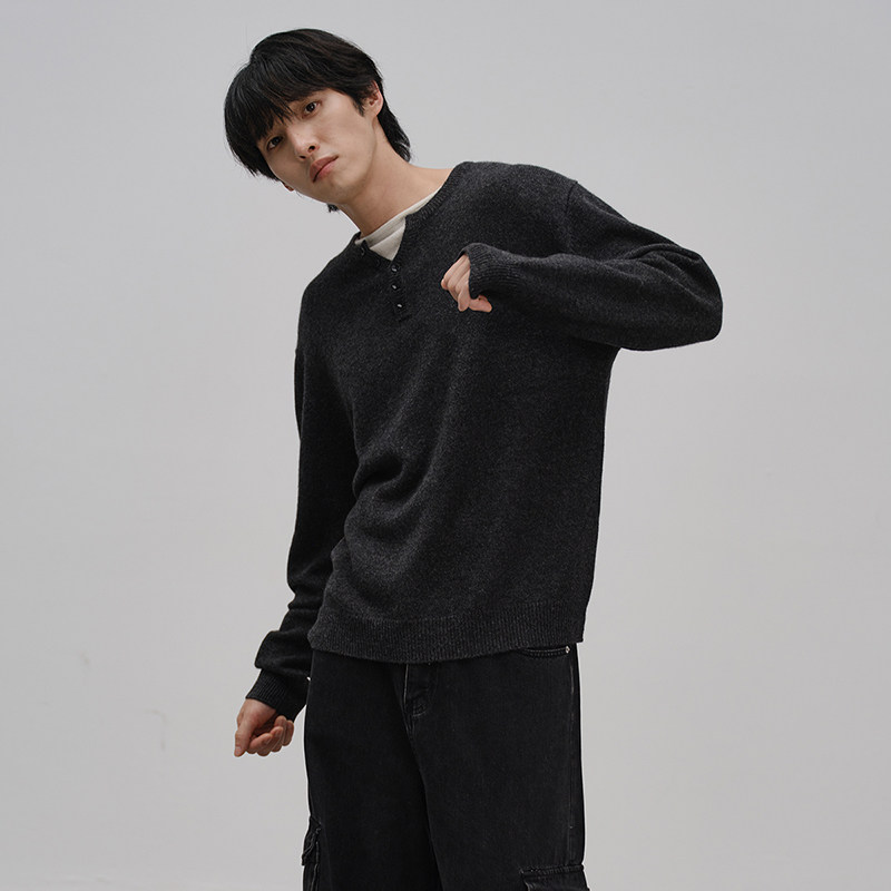 天恒源祥100%羊毛衫男装春秋季简约毛衣打底衫百搭套头针织上衣宽松