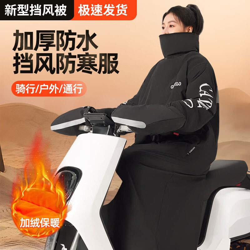 天猫电动车挡风被冬季加绒加厚电瓶车防风衣罩挡风衣摩托车骑行防寒服