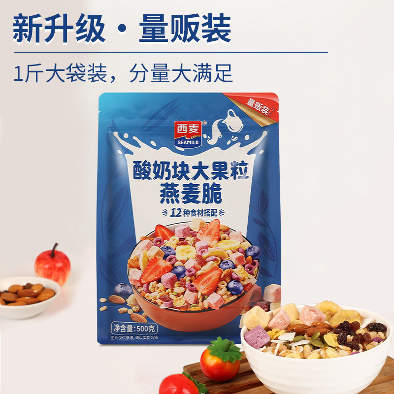 天猫西麦酸奶块大果粒坚果燕麦脆多种水果袋装开袋即食营养早餐燕麦片
