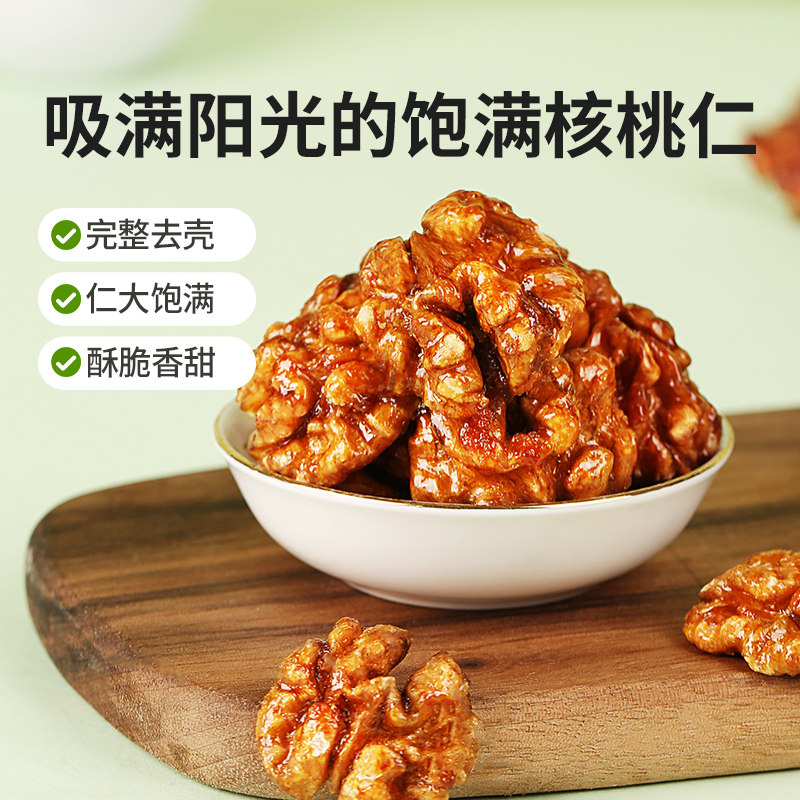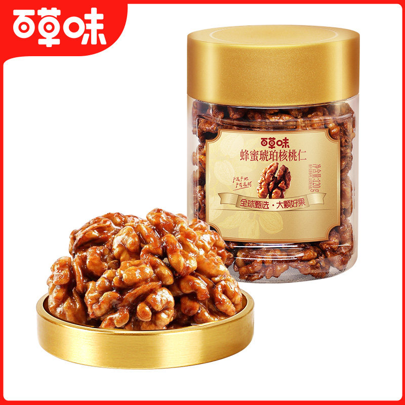 【满减】百草味蜂蜜琥珀核桃仁,精选新疆优质核桃仁,颗颗饱满酥脆,经传统工艺裹以天然蜂蜜熬制的琥珀糖衣,甜而不腻,香醇可口。外层晶莹透亮,内里坚果香浓,口感层次丰富,既是健康零食,也是馈赠佳品。120g精致小包装,方便携带,随时随地享受美味。富含不饱和脂肪酸、蛋白质及多种维生素,营养美味兼具。现参与满减活动,超值优惠,不容错过!无论是追剧、办公还是休闲时光,百草味蜂蜜琥珀核桃仁都是理想选择,让您在甜蜜香脆中品味新疆自然馈赠。
