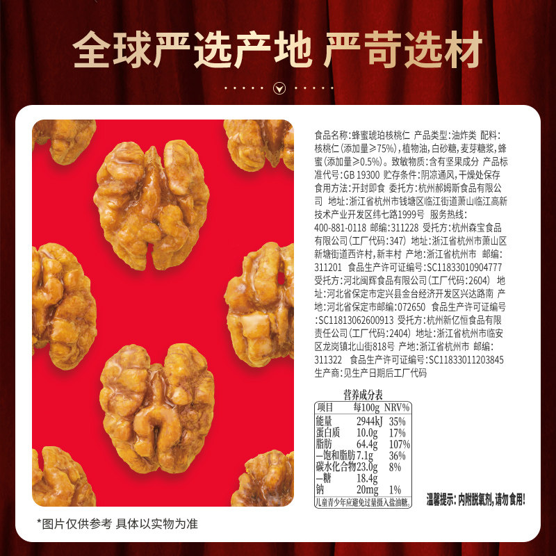 天猫【满减】百草味蜂蜜琥珀核桃仁120g核桃坚果零食干果新疆特产