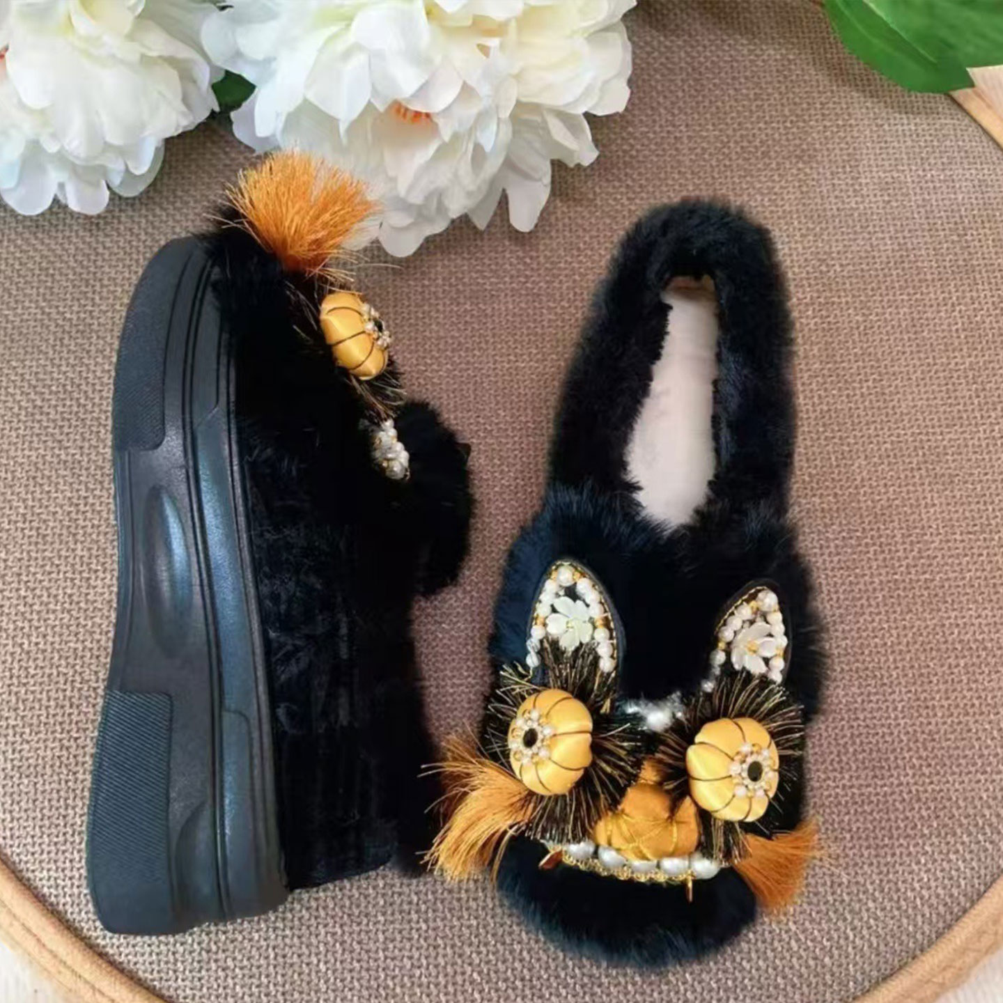 淘宝冬加绒原创非遗虎头鞋女新中式手工绣花鞋软底保暖平底民族风棉鞋