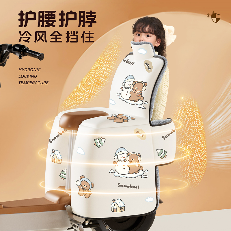 天猫电动车后座挡风被儿童冬季亲子款加绒加厚电瓶车冬款防水防风罩