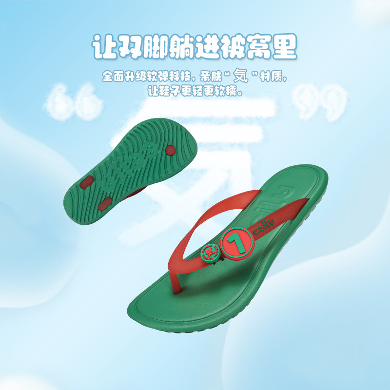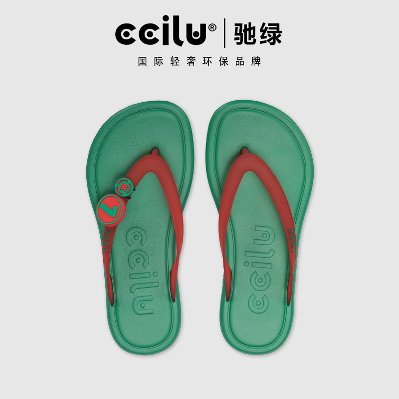 天猫ccilu驰绿足球国家队拖鞋男女夹趾拖鞋防滑葡萄牙人字拖沙滩拖鞋