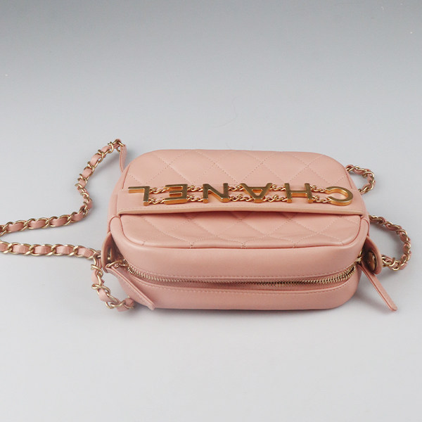 淘宝「9.0新」CHANEL(香奈儿)FRONT LOGO 链条相机包粉色牛皮斜挎包