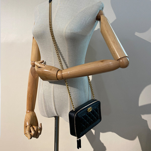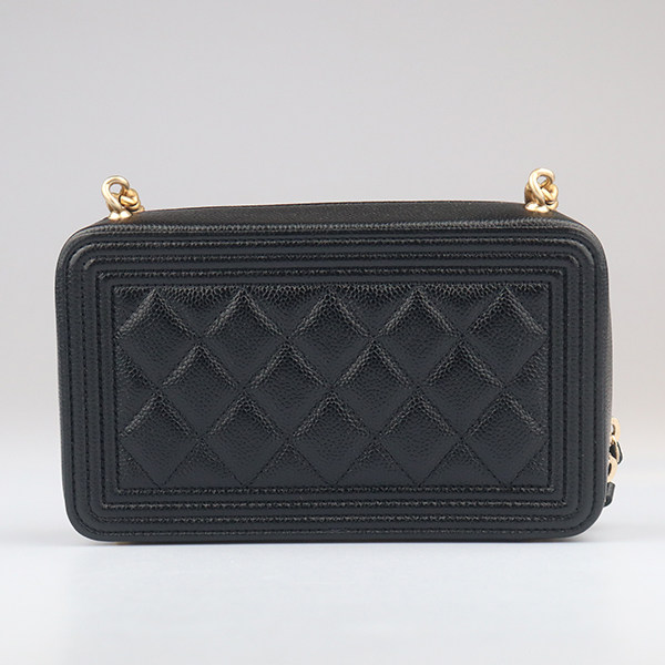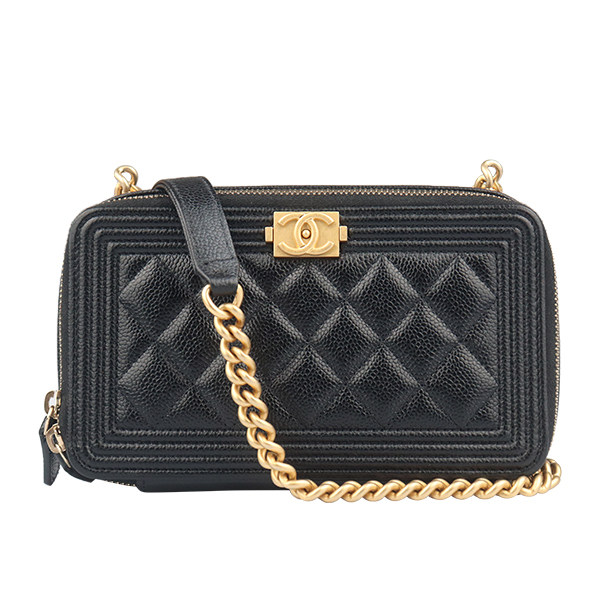 淘宝9新CHANEL香奈儿BOY CHANEL 拉链手机黑荔枝皮斜挎二手奢侈品包包