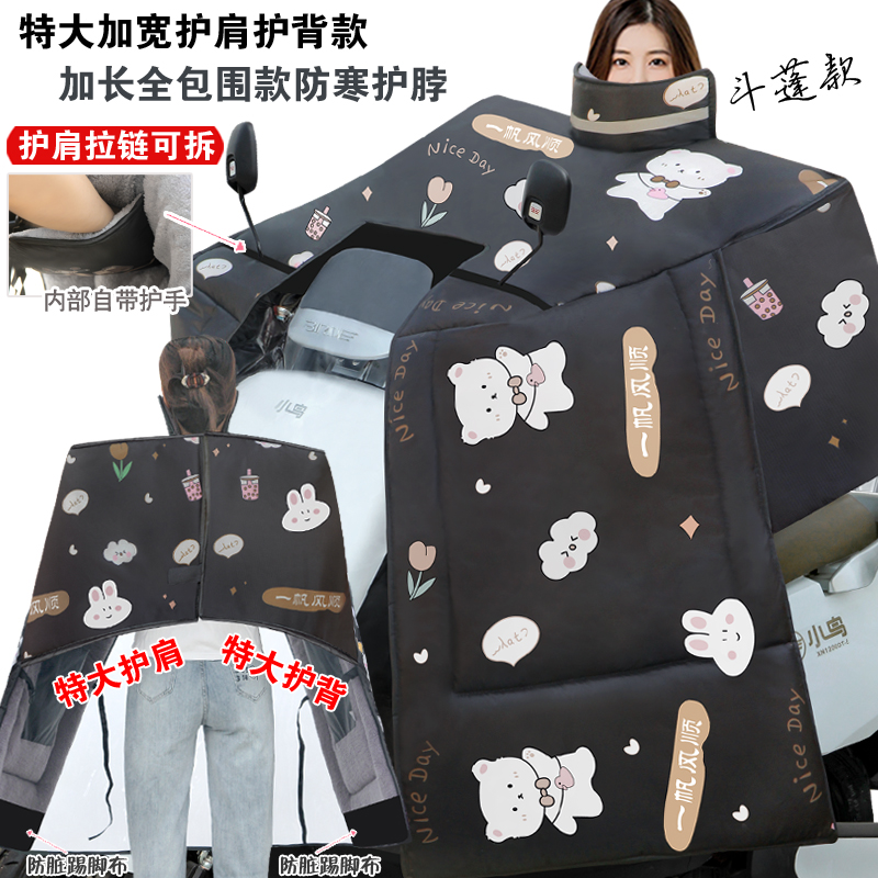 天电动车斗篷挡风被冬季护肩护脖加绒加厚保暖四季通用全包式防风被