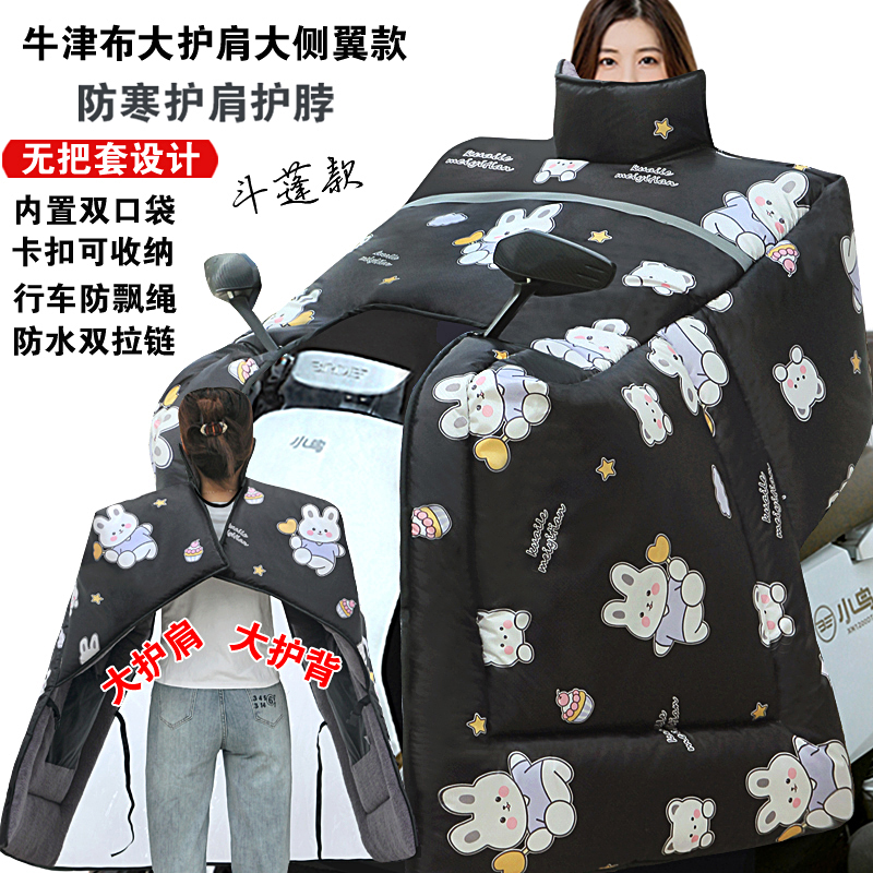 电动车斗篷挡风被冬季护肩护脖加绒加厚保暖四季通用全包式防风被