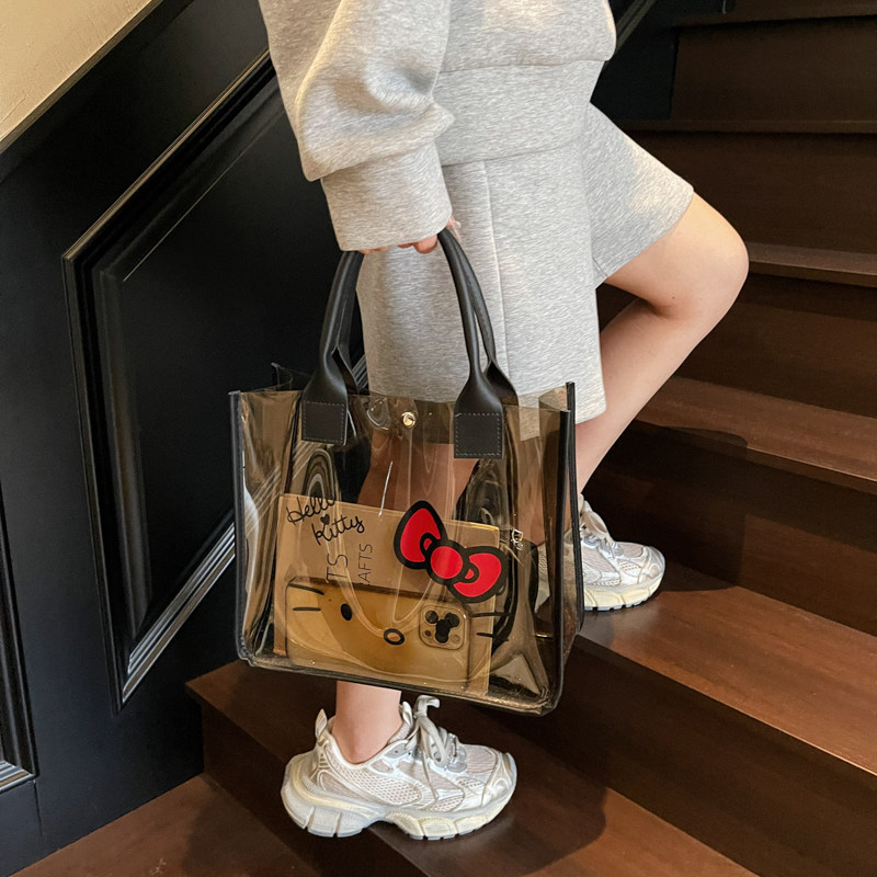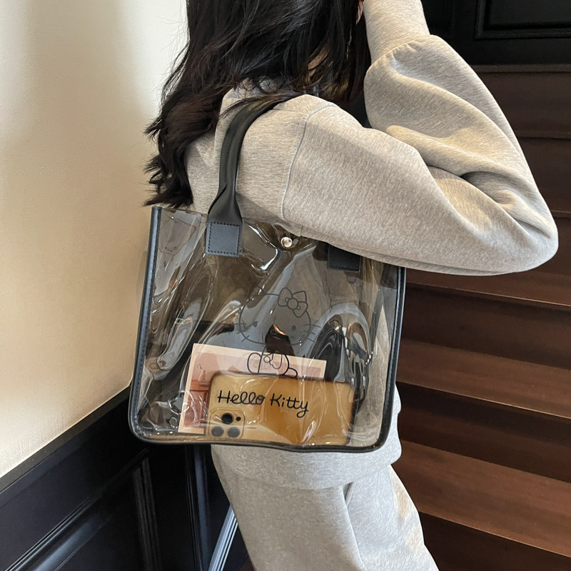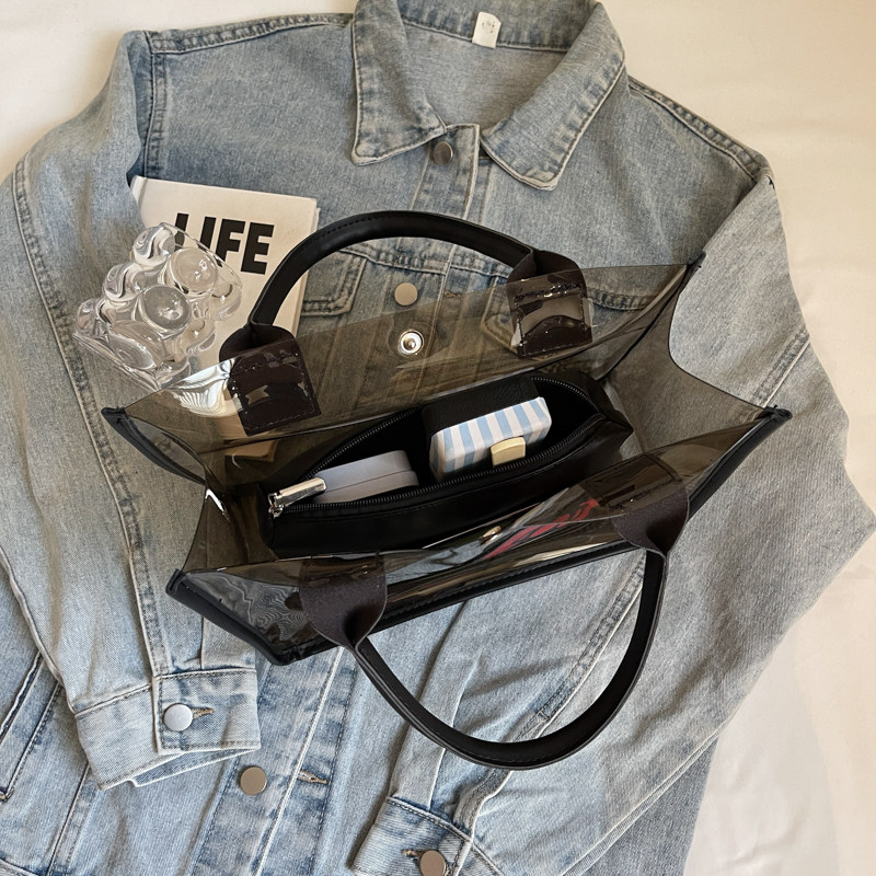 今年流行黑色大容量透明包包女夏2025新款果冻单肩大包洋气托特包