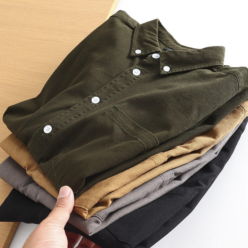淘春秋小外套!经典肌理感 日系复古宽松休闲牛仔长袖衬衫男 衬衣潮