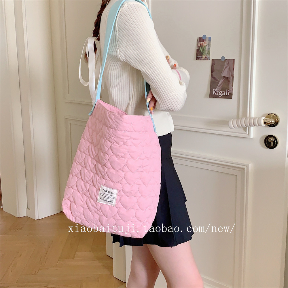 淘宝小白兔几 ins新款撞色单肩书包女实用大容量妈咪包绗缝单肩包女
