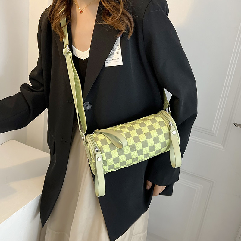淘宝棋盘格圆筒小包包女2022新款潮时尚水桶包百搭ins小众单肩斜挎包