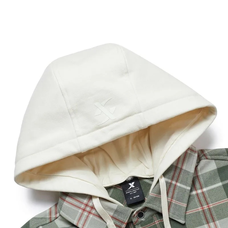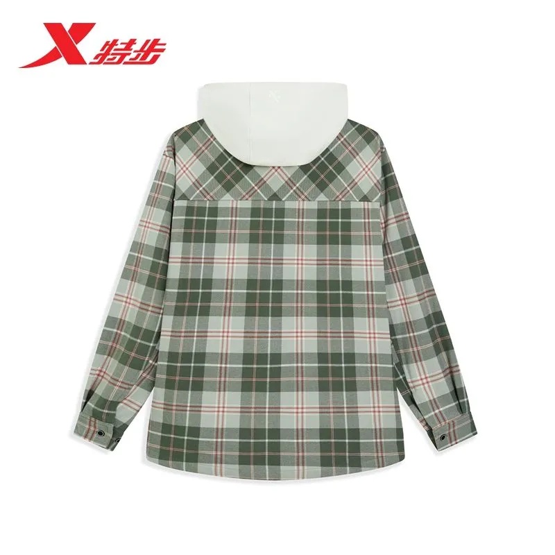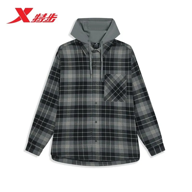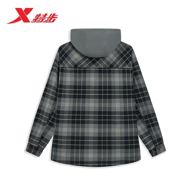 淘宝特步格纹衬衫男2025冬季新品法兰绒百搭连帽宽松外套9754292A0498