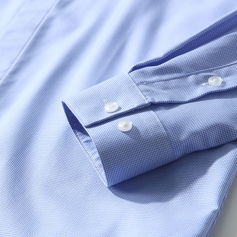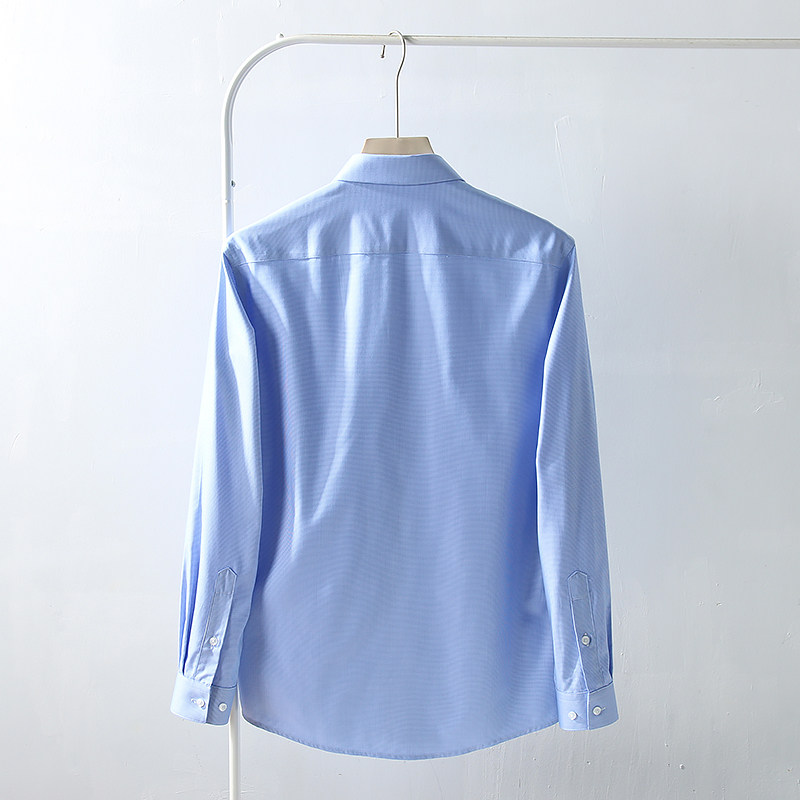 淘男士蓝色长袖衬衫纯蓝深色中年纯宝蓝男装纯色秋季商务大码男衬衣