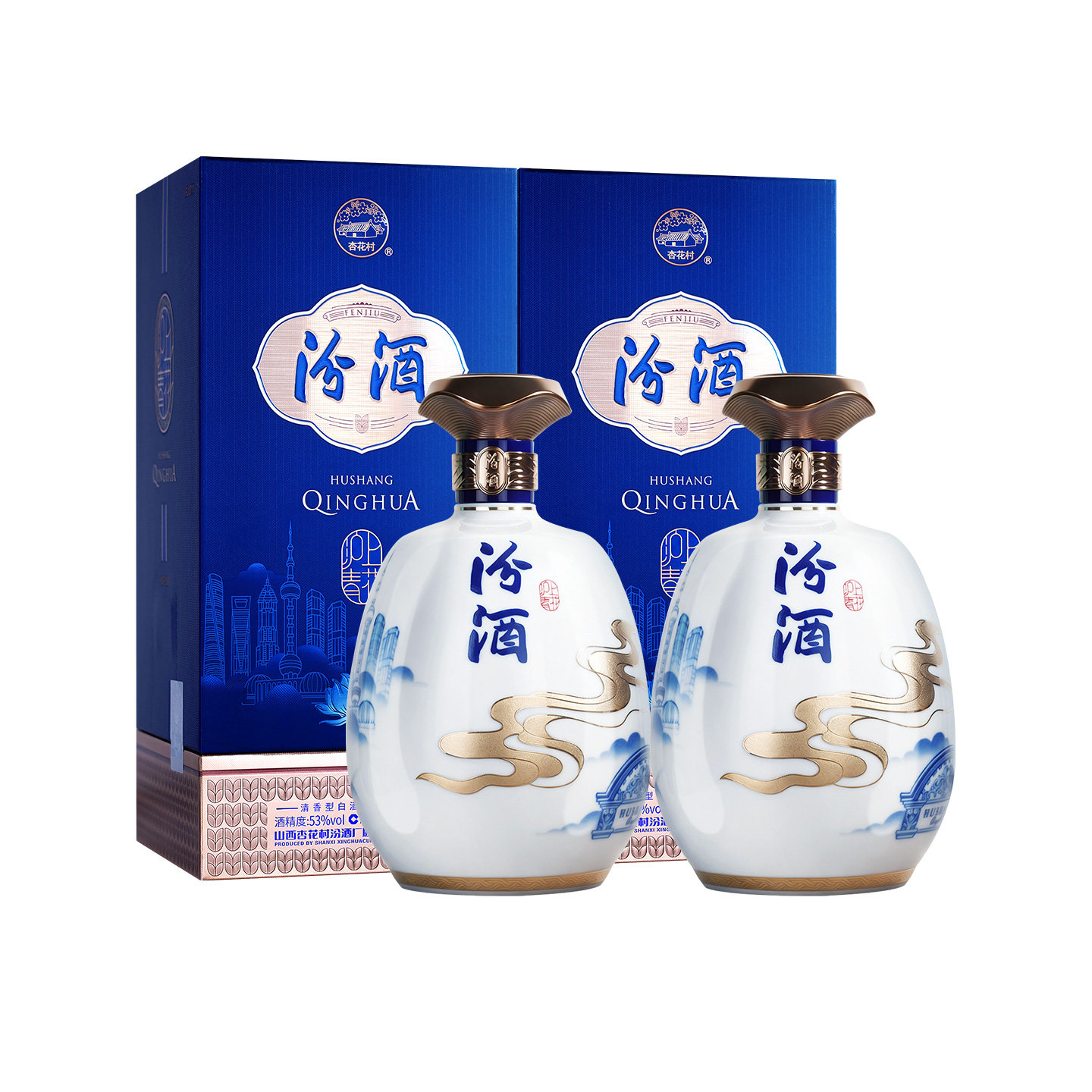 汾杏经典53度清香型白酒整箱475ml*4瓶杏花村酒水礼盒纯粮食酒