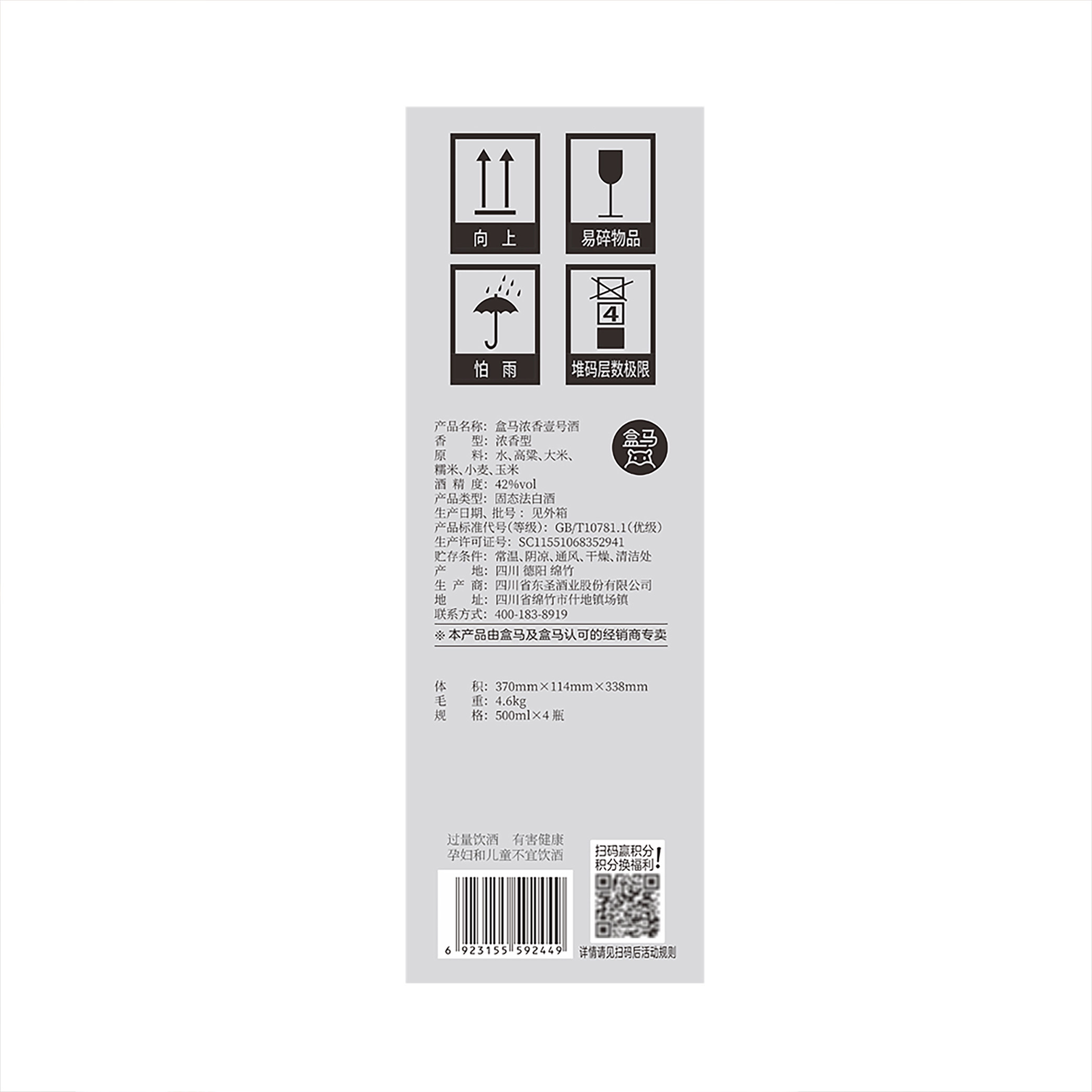 天猫盒马 浓香壹号 浓香型白酒 42度500ml*4瓶