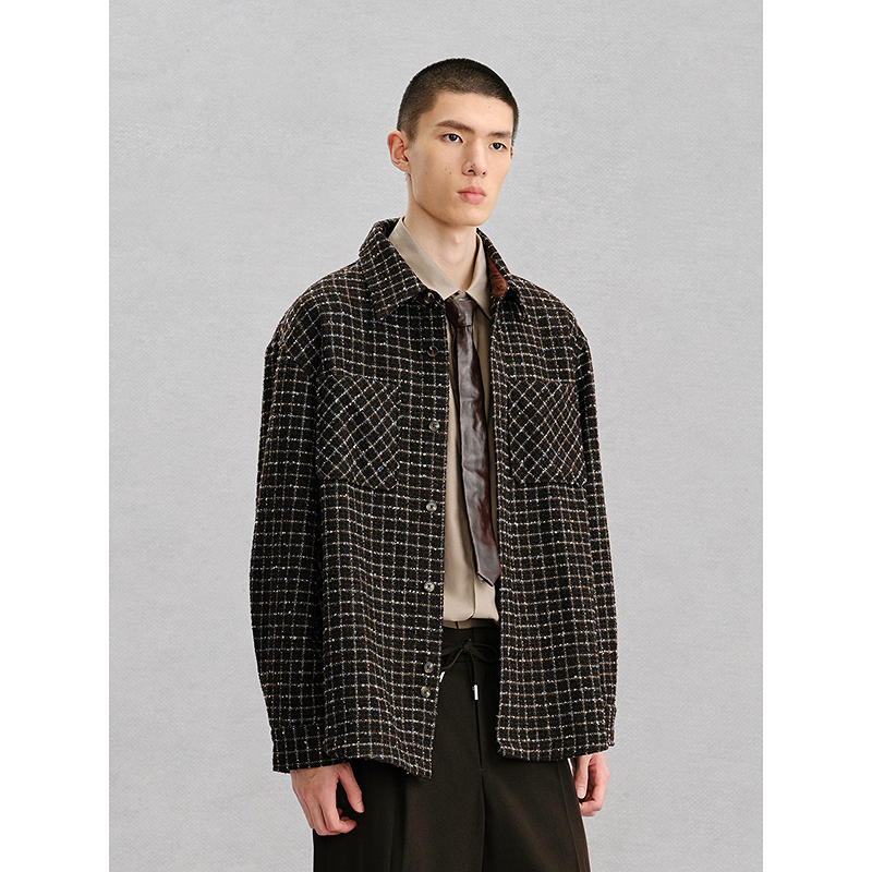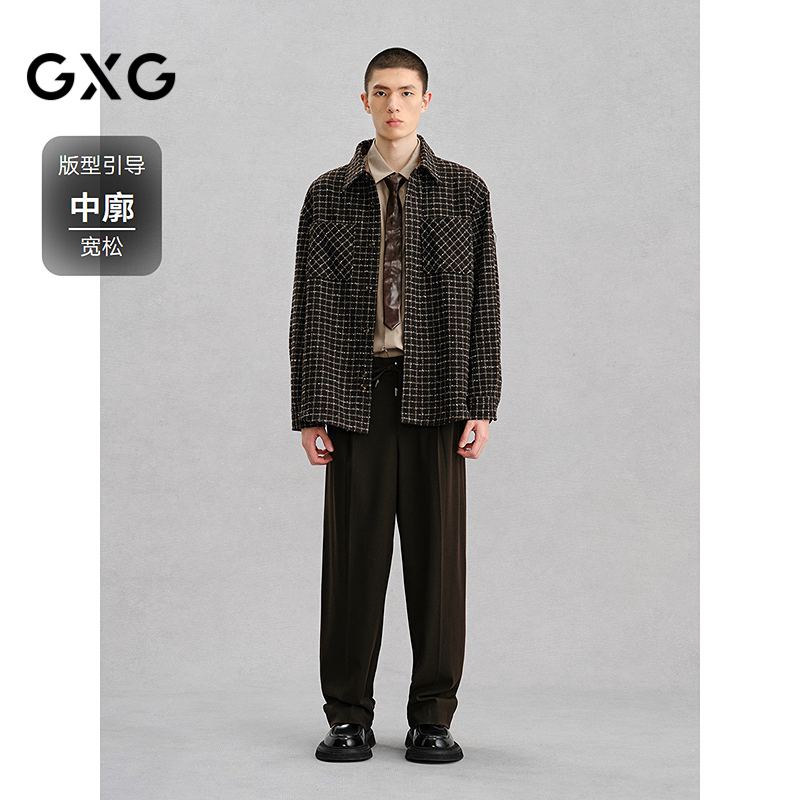 天猫GXG男装 棕色小香风长袖衬衫外套24年冬季品G24X034062