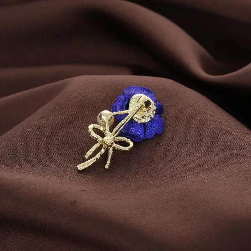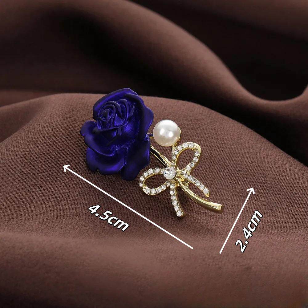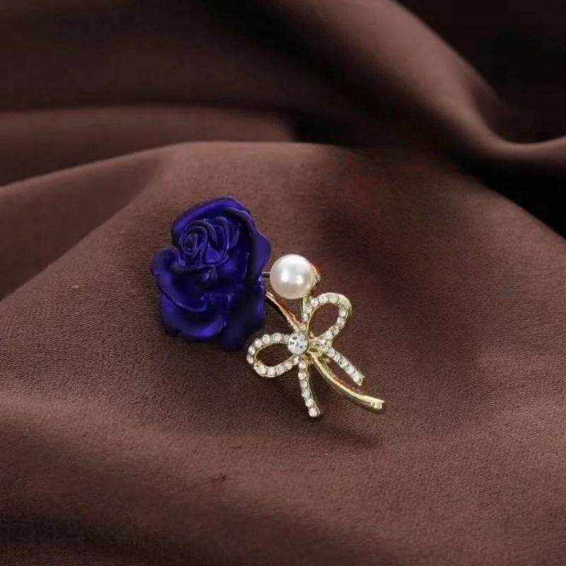 淘宝新款蓝色玫瑰花朵蝴蝶结胸针时尚气质百搭别针毛衣外套防走光胸花
