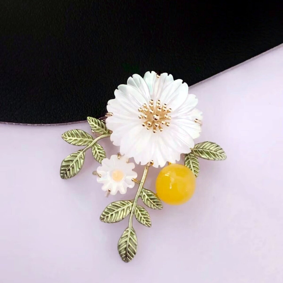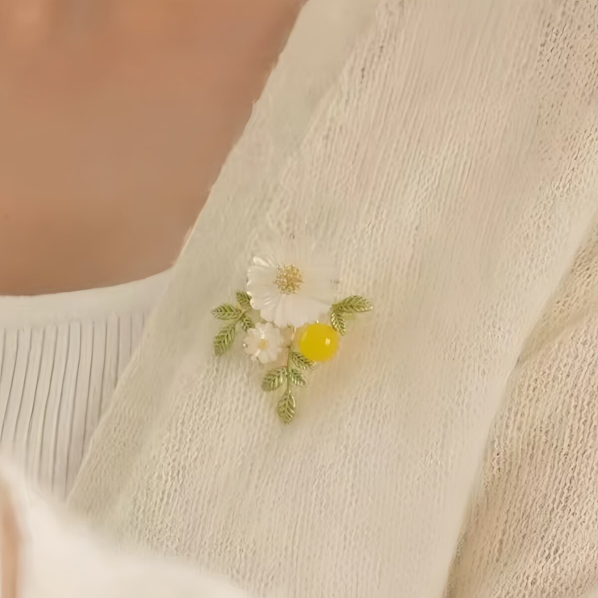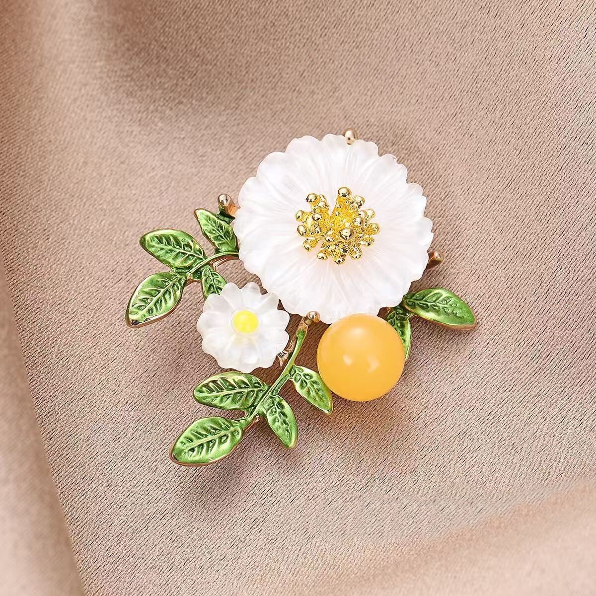 淘宝新款百搭绿叶胸针雏菊胸花高级气质轻奢小香风胸针送妈妈生日礼物