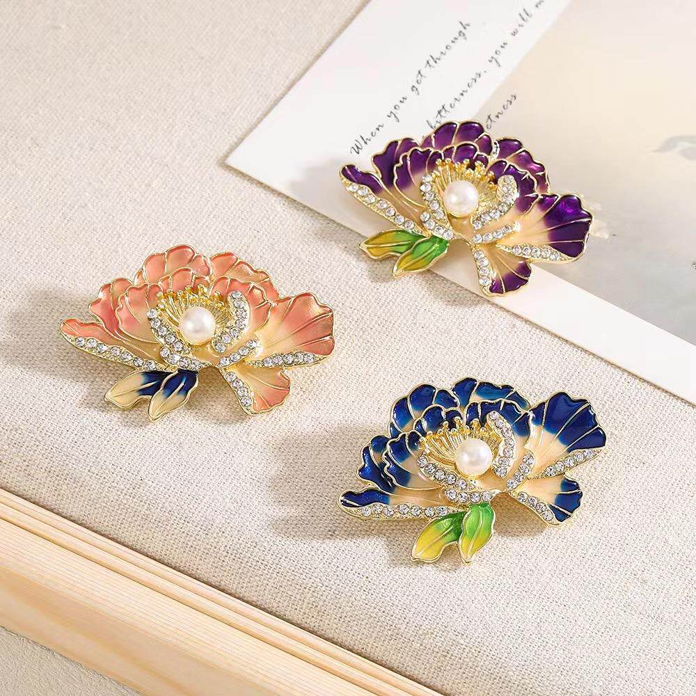 淘宝【福利款】中式蓝色牡丹花胸针精致淡雅国风旗袍领针大衣配高级感
