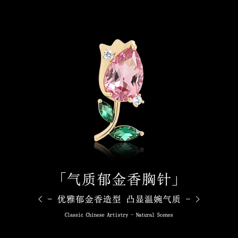 天猫轻奢高级感郁金香胸针高端精致时尚西装胸花小众设计高档奢华别针