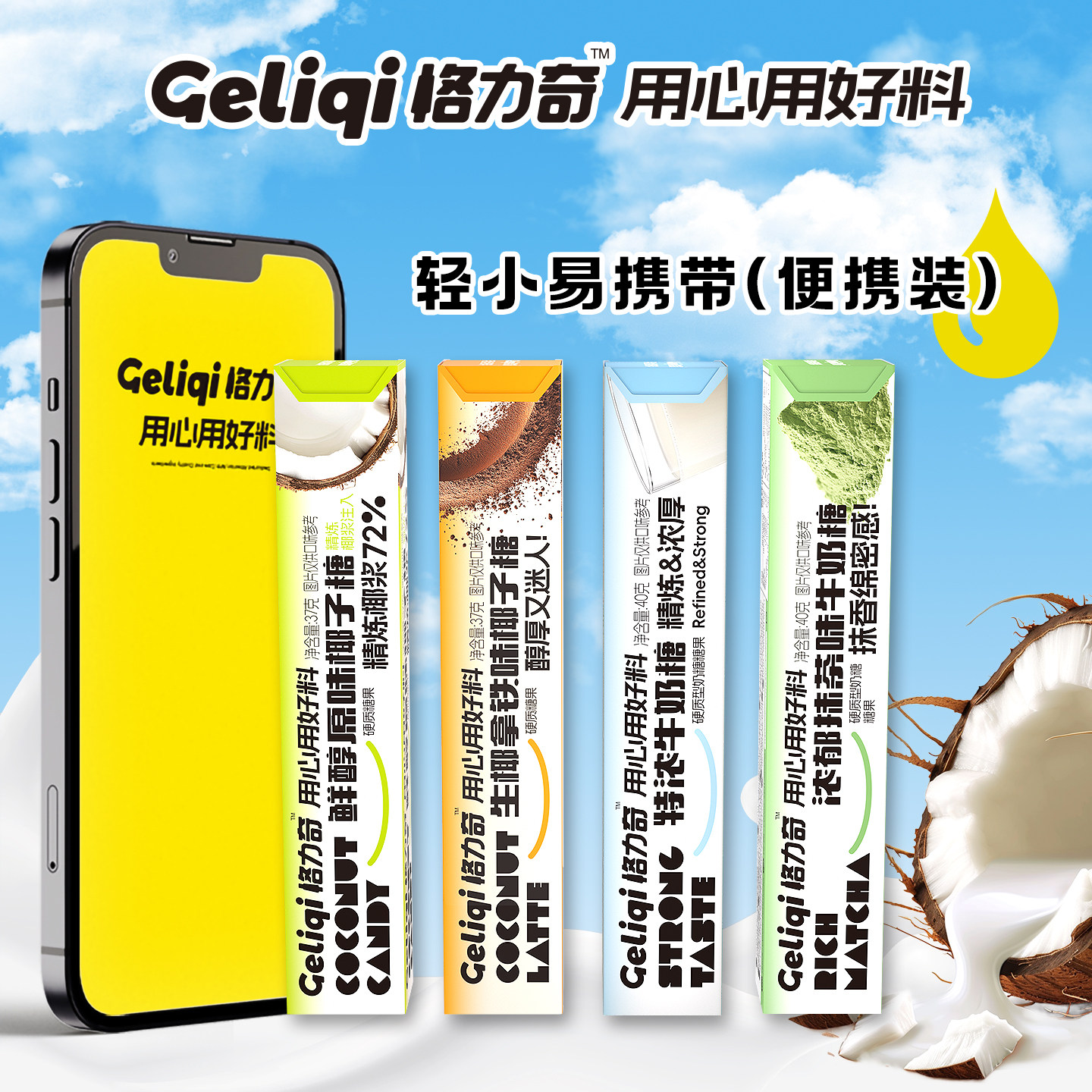 格力奇条装椰汁糖生椰拿铁硬糖是一款融合浓郁椰香与醇厚拿铁风味的网红休闲零食。精选优质椰汁与特浓牛奶,口感层次丰富,甜而不腻,入口即化,带来独特的生椰拿铁体验。条状独立包装,方便携带,适合办公室、居家或旅行时享用。无论是作为喜糖分享,还是日常解馋小食,都能满足味蕾需求。凭借其创新口味与精致包装,迅速成为社交平台上的热门零食,深受年轻人喜爱。格力奇以匠心工艺打造每一颗糖果,让美味与健康兼得,是休闲时刻的理想选择。