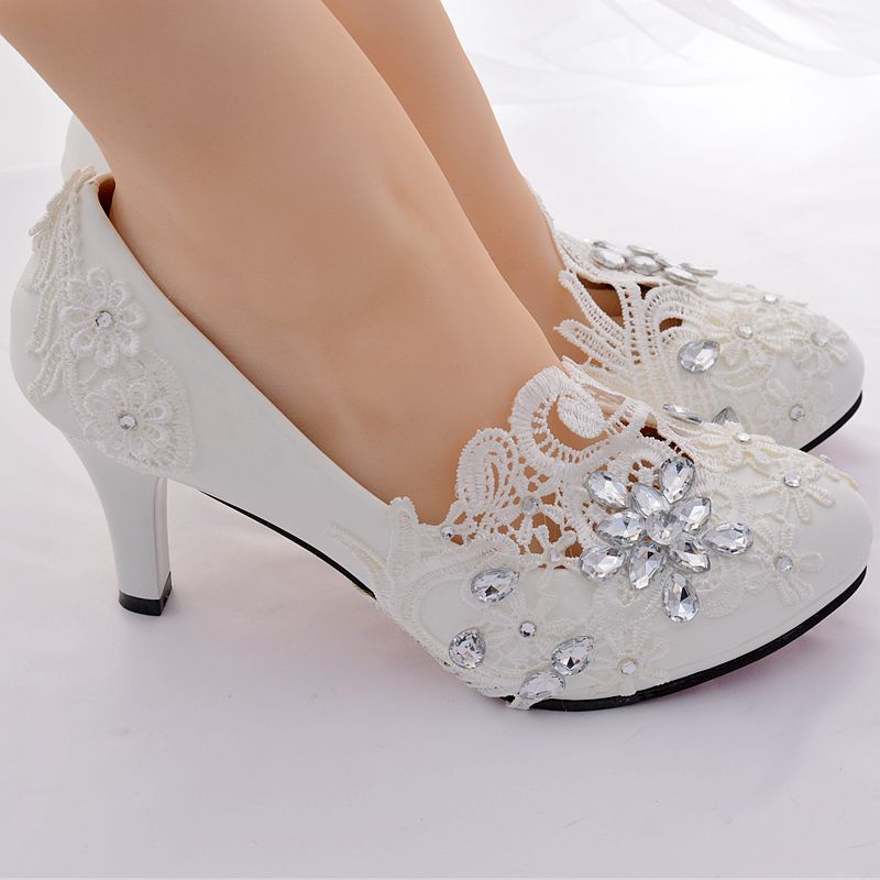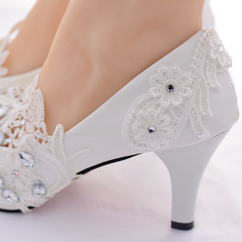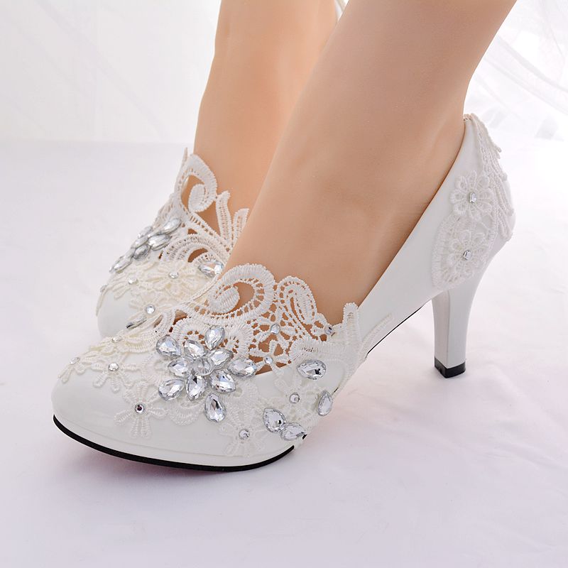 淘宝新品大码女鞋新娘结婚鞋白色高跟蕾丝水钻绣花婚鞋伴娘鞋宴会礼服