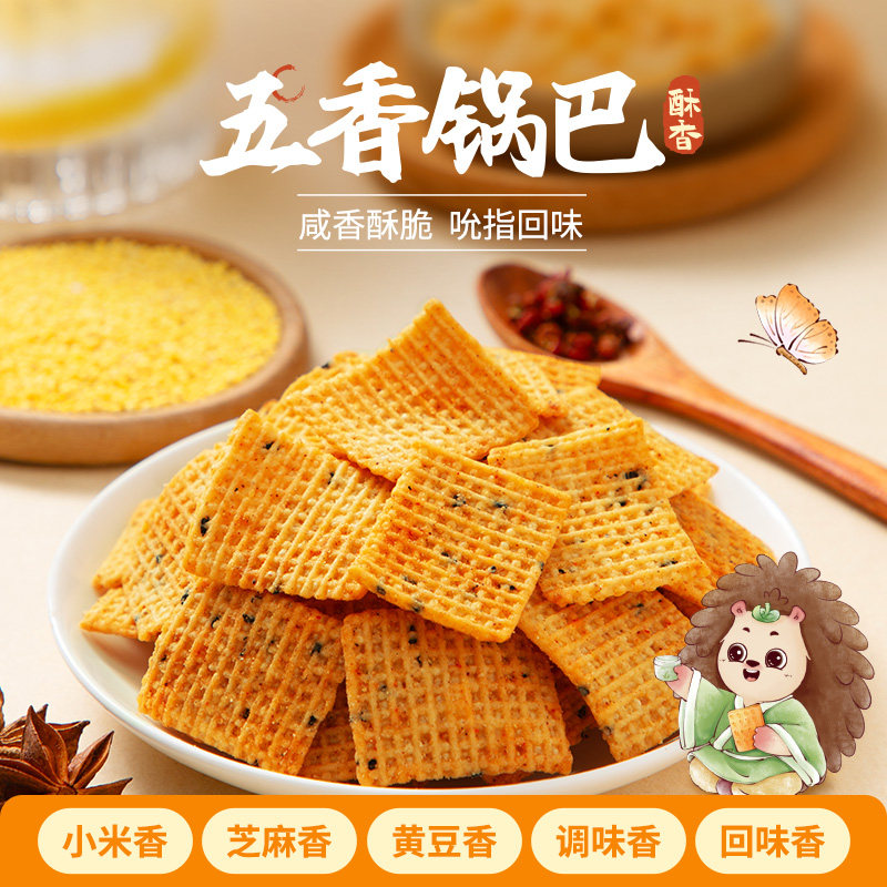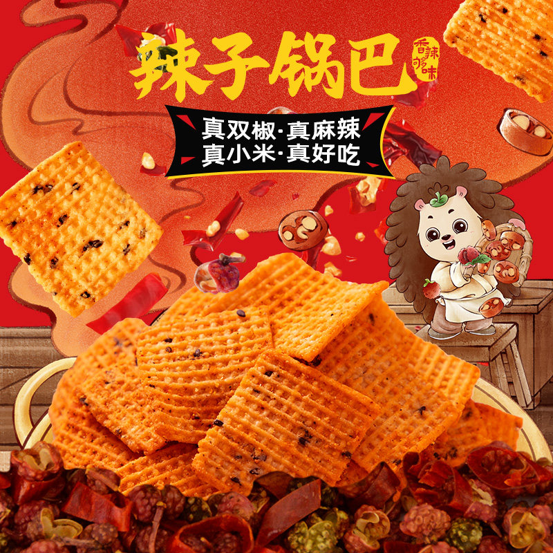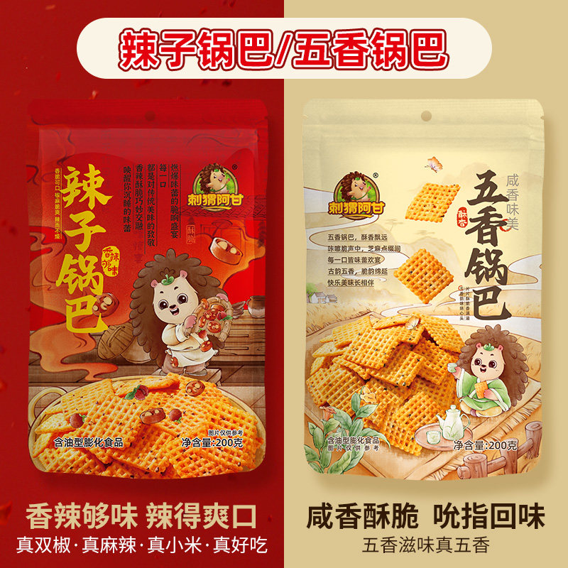 天猫刺猬阿甘辣子五香锅巴200g小米真双椒酥脆解馋追剧休闲小零食小吃