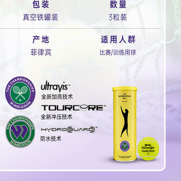 Slazenger史莱辛格温网比赛用球高弹单人练习初学者训练球,专为网球初学者和日常训练设计。采用与温布尔登锦标赛同款的优质橡胶与毛毡材质,确保球体耐用、弹跳稳定,手感真实。高弹性能帮助初学者更好地掌握击球节奏与力度控制,提升训练效率。每套包含3只球,适合单人多球练习或双人对打。其标准尺寸与重量符合ITF规范,有助于培养正确击球习惯。无论是家庭练习、俱乐部训练还是户外休闲,这款训练球都是提升球技的理想选择,让初学者在专业品质中稳步进阶。