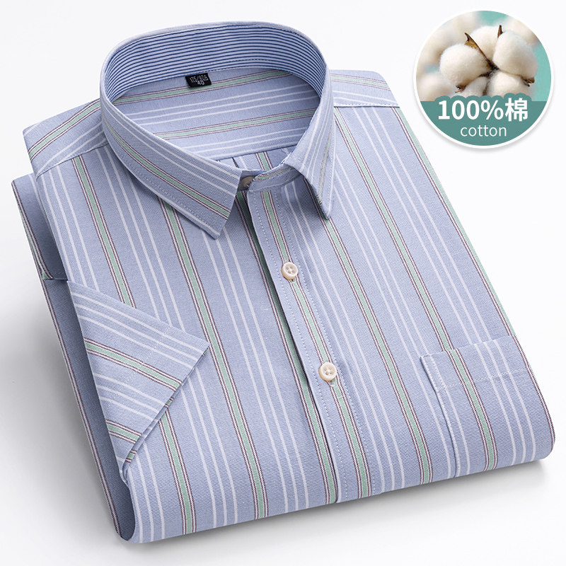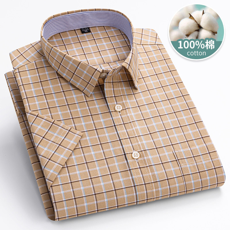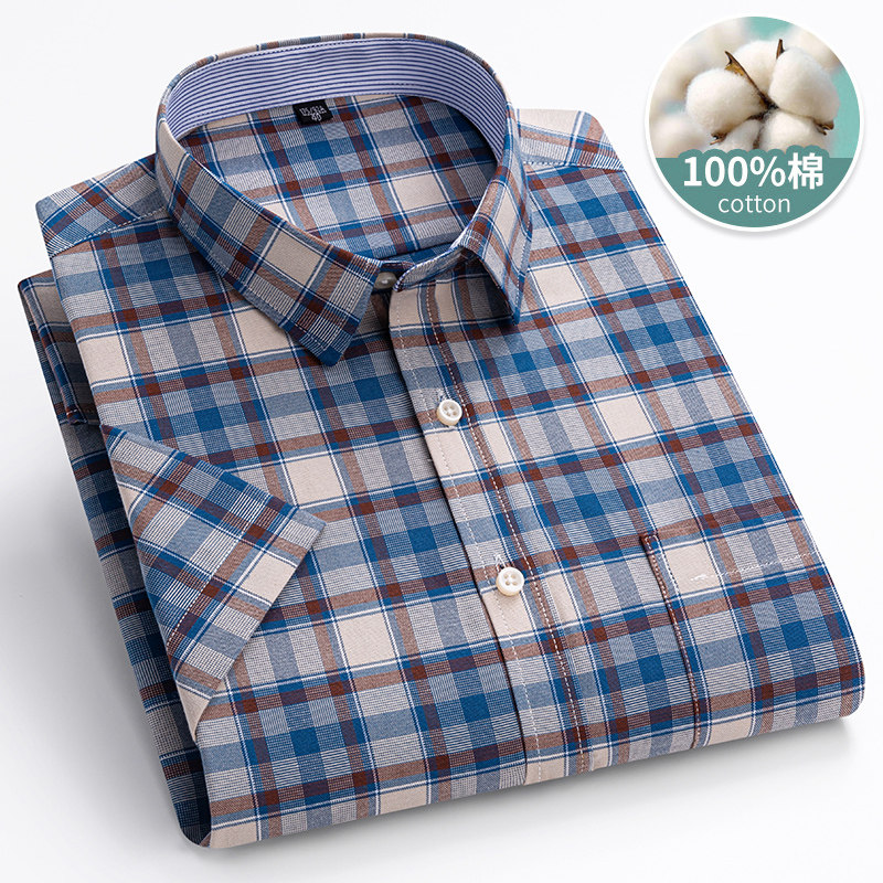 淘宝保罗100%纯棉男士格子短袖衬衫中青年休闲全棉牛津纺半袖衬衣男装