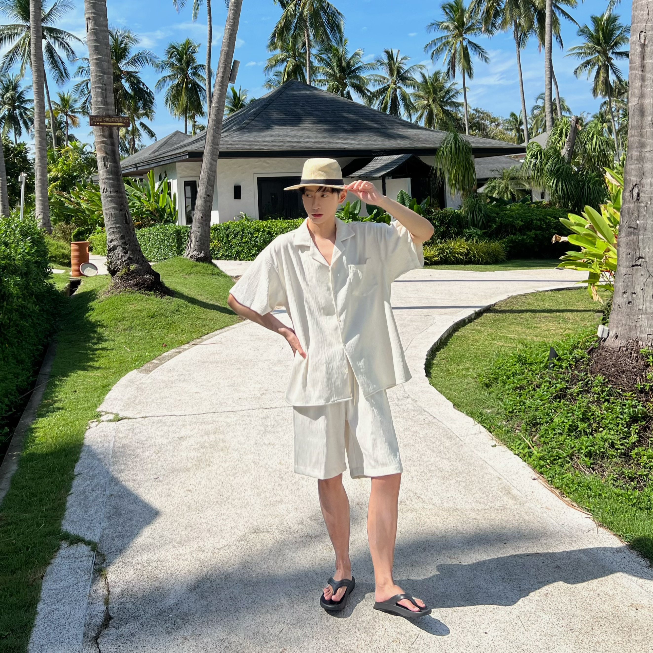 淘宝XMOB STUDIO新款夏季高级感时髦套装休闲衬衫短袖男宽松百搭潮流