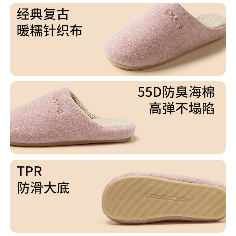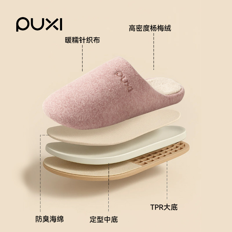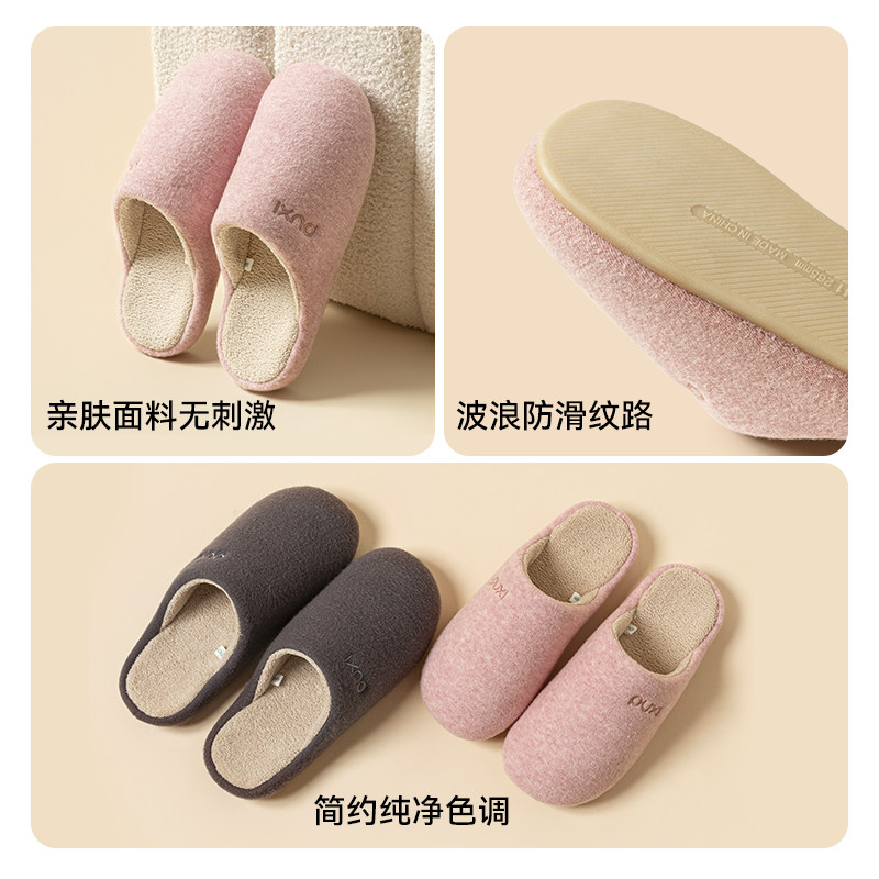 朴西苔痕加绒棉拖鞋女冬家用防滑保暖居家室内卧室抗菌毛拖鞋男