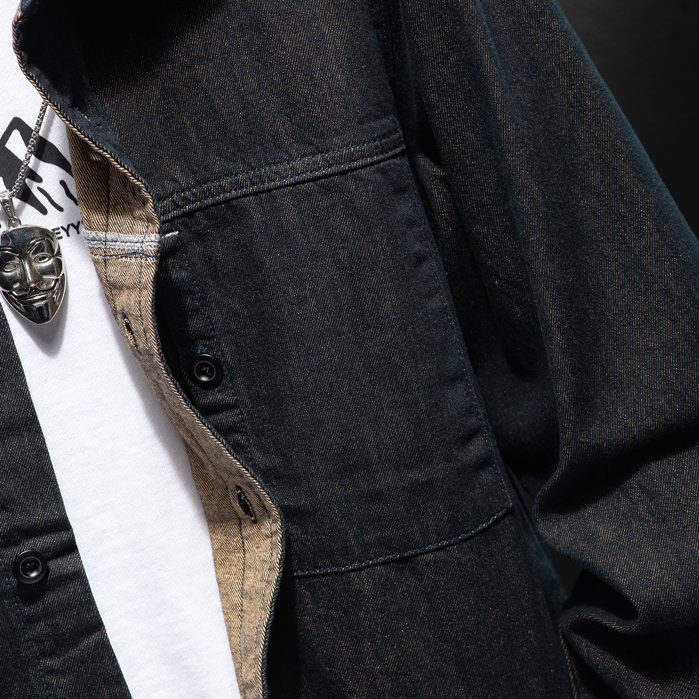 三川一禾男士时尚复古双袋牛仔衬衫秋季新款宽松休闲衬衣外套上衣