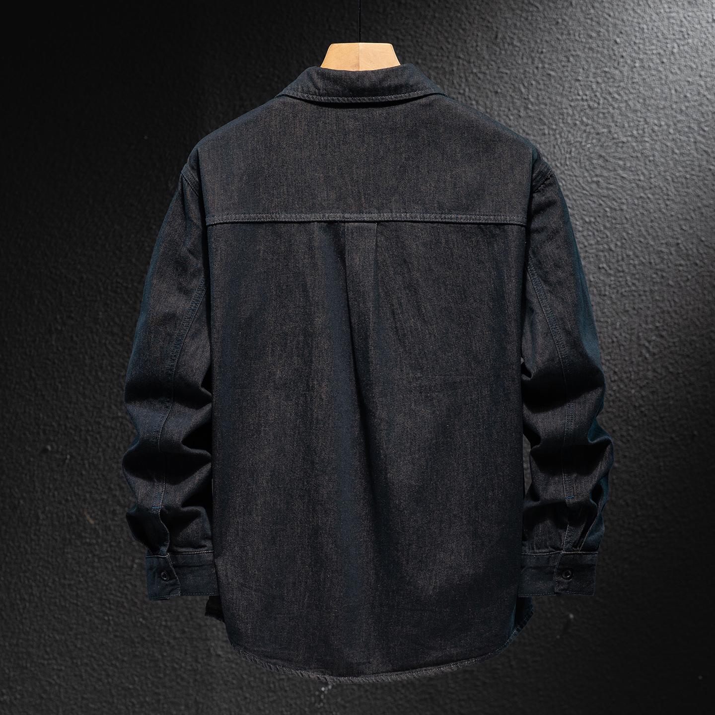 天猫2025秋季新款男士牛仔衬衫宽松休闲黑色潮流欧美外搭寸衣男上衣装