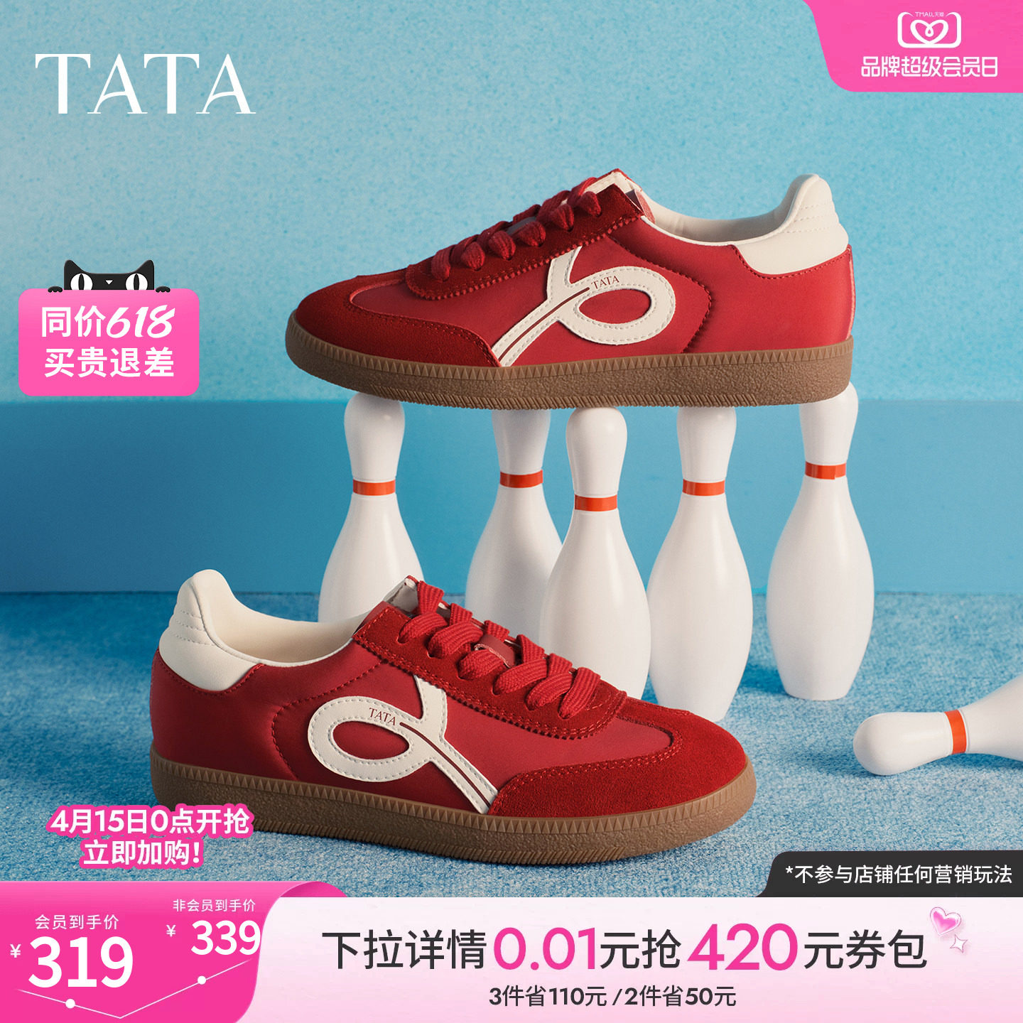 天猫孙乐言同款TATA他她步履同心情侣款红色德训鞋女鞋平底运动鞋男