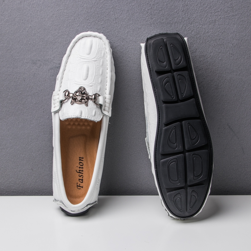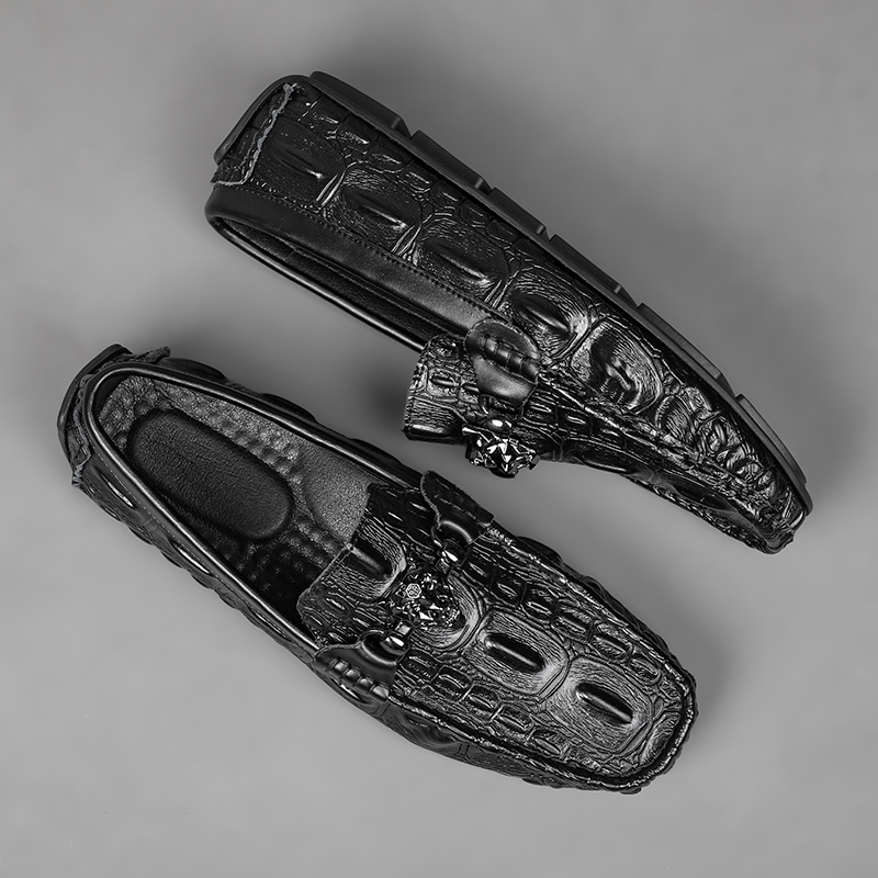 天猫2025新款鳄鱼纹豆豆鞋男真皮软底社会精神小伙一脚蹬懒人休闲皮鞋