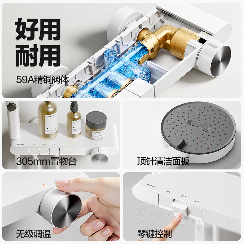 天猫松下冷热花洒套装无顶喷自除垢简易淋浴分体家用枪灰色白色花洒S1