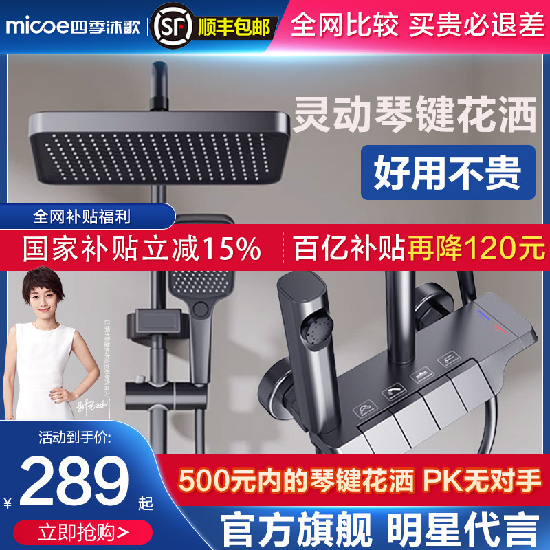 天猫[百亿9折券]四季沐歌卫浴淋浴花洒套装琴键智能花洒家用浴室增压