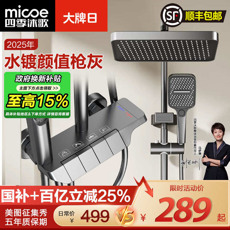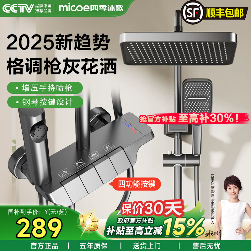 四季沐歌卫浴淋浴花洒套装,搭载“琴键”式智能触控面板,操作便捷,一键切换多种出水模式,满足全家不同沐浴需求。采用先进增压技术,即使在低水压环境下也能稳定出流,提升淋浴体验。精选优质不锈钢材质,耐高温、抗腐蚀,持久耐用。套装包含顶喷、手持花洒及下出水,功能齐全,适配多种浴室风格。现推出【百亿9折券】优惠活动,品质保障,性价比超高,让智能舒适沐浴触手可及。四季沐歌,专注热水二十年,值得信赖的卫浴品牌,为您打造健康、节能、智能的现代浴室空间。