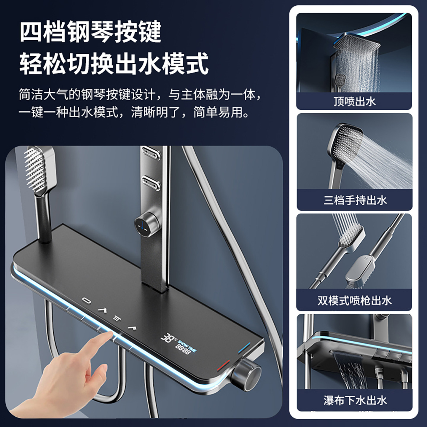 天FLOVA丰华卫浴 枪灰色恒温淋浴花洒套装推钮式开关温控瞬停顶喷