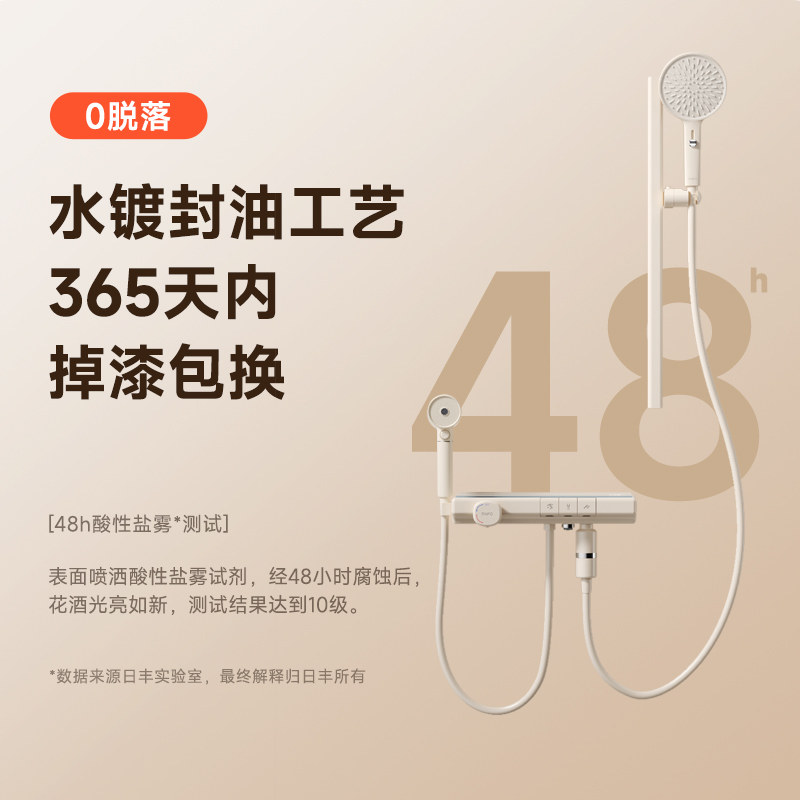 天猫日丰奶油风白色儿童淋浴恒温花洒套装过滤极简易无顶喷淋浴器慕斯