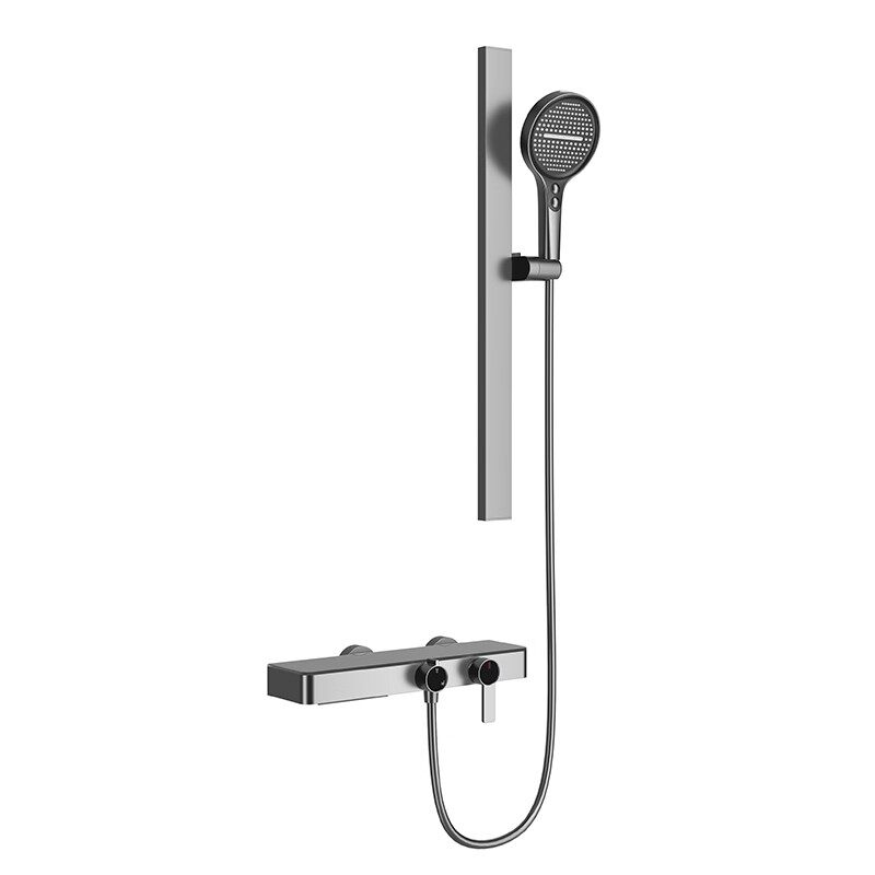 天FLOVA丰华卫浴 枪灰色恒温淋浴花洒套装推钮式开关温控瞬停顶喷