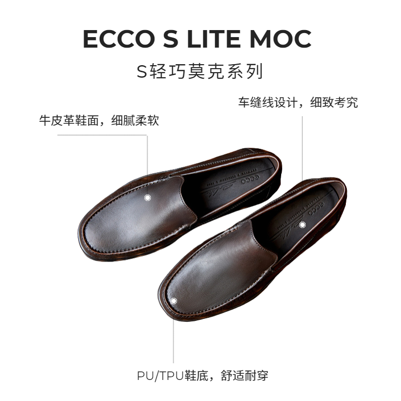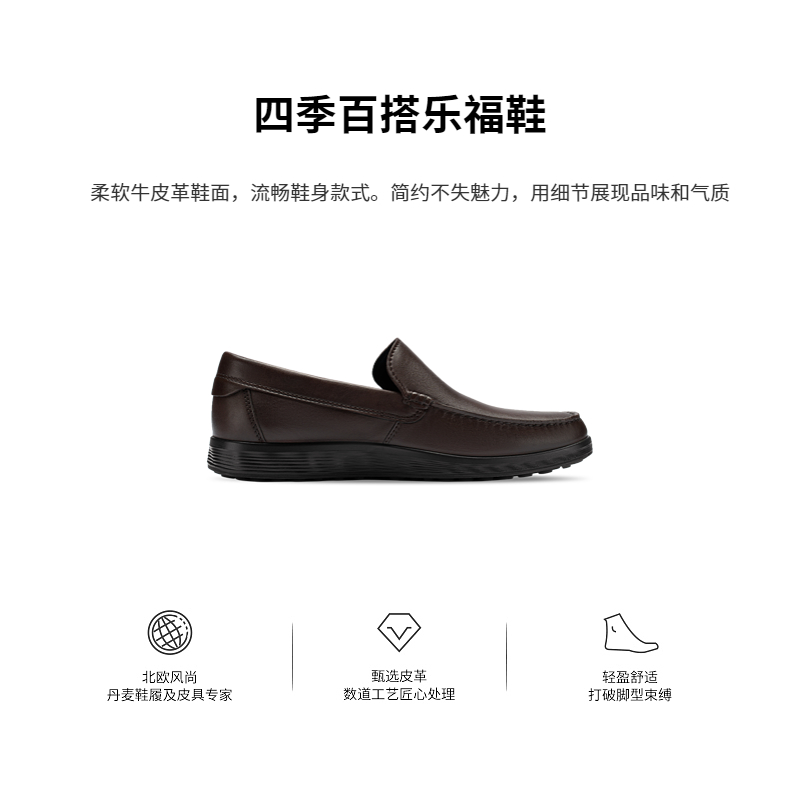 天猫ECCO爱步乐福鞋男 秋季真皮一脚蹬皮鞋 轻巧莫克540514