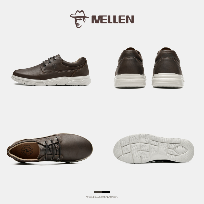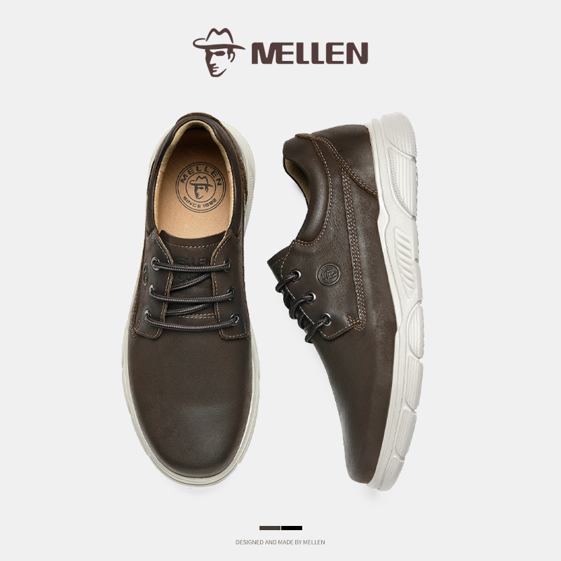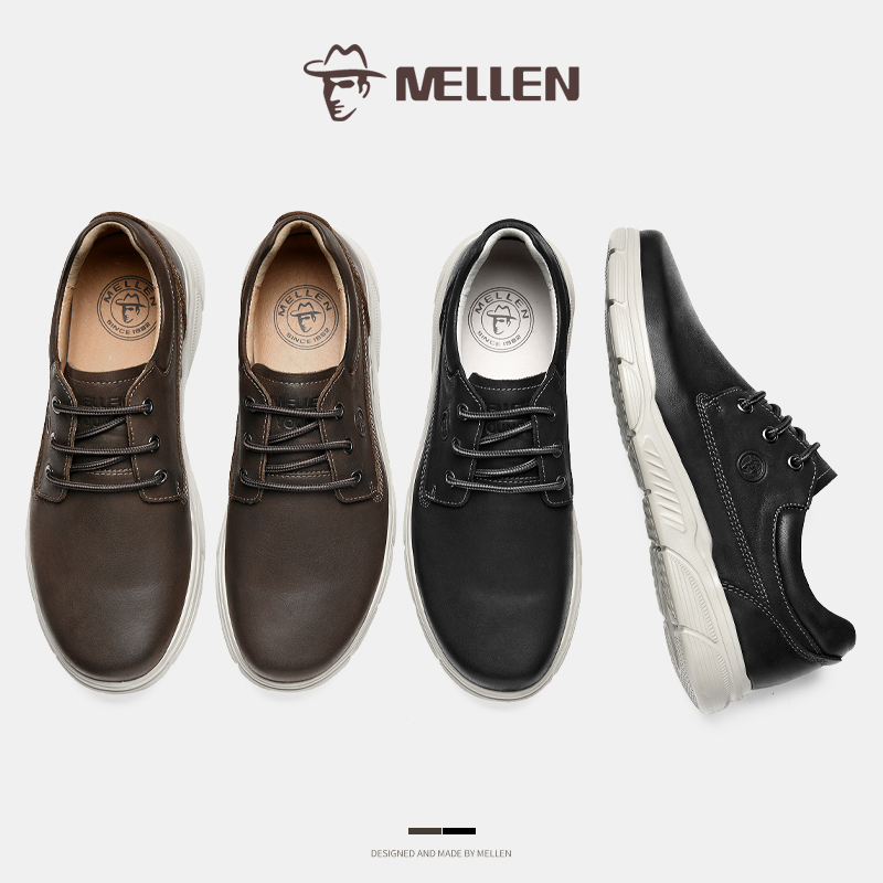 天猫MELLEN名郎男士休闲皮鞋2025秋冬新品干爽舒适轻盈防滑耐磨休闲鞋